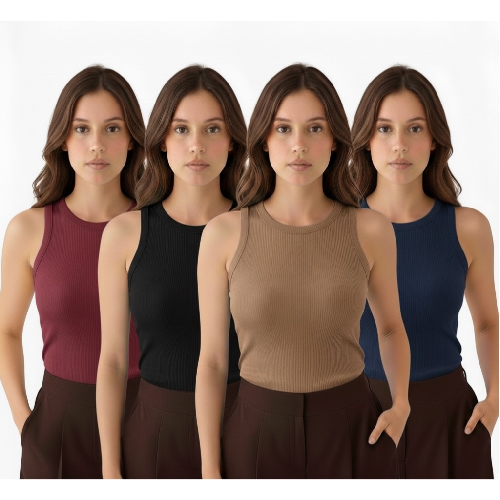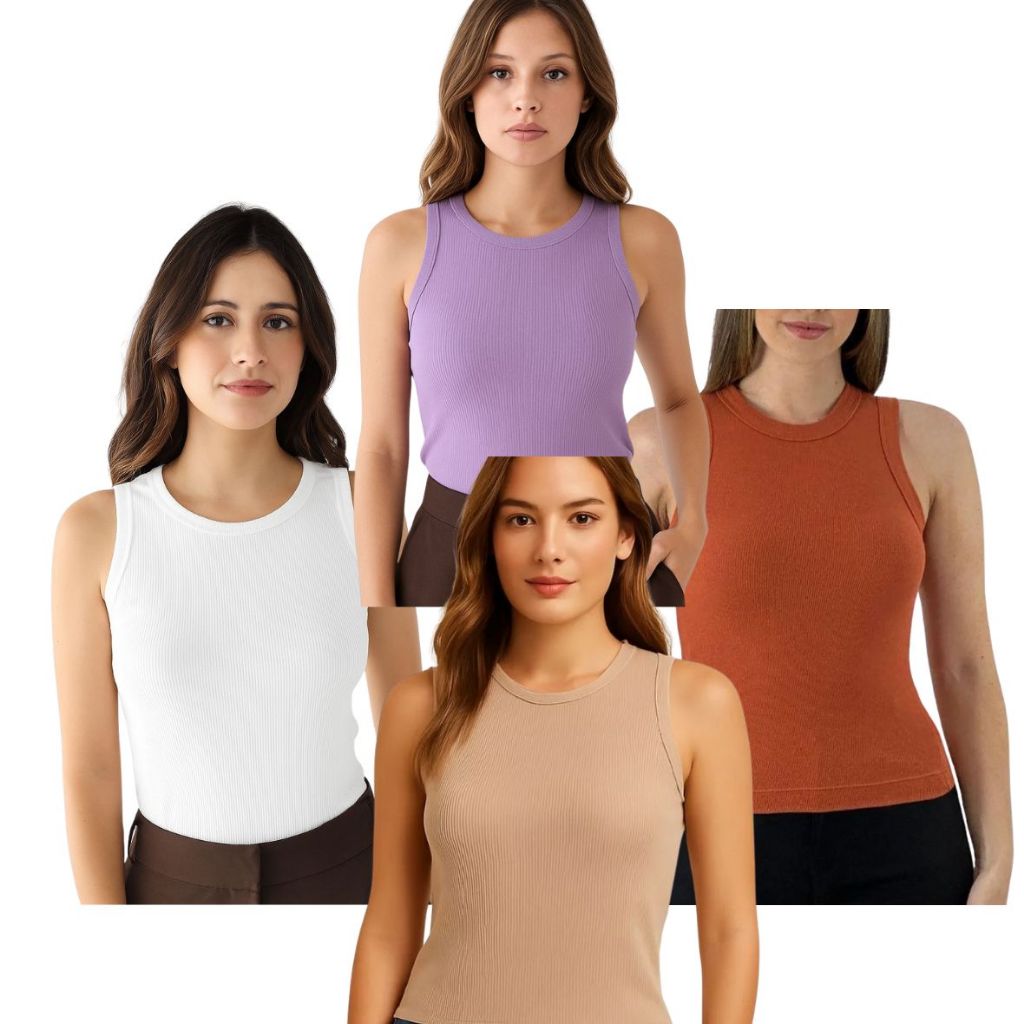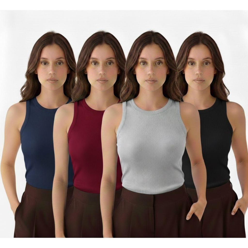 Kit 4 Regata Premium Feminina Modelo Americano Ribana Canelada Algodão e Elastano Primeira Linha