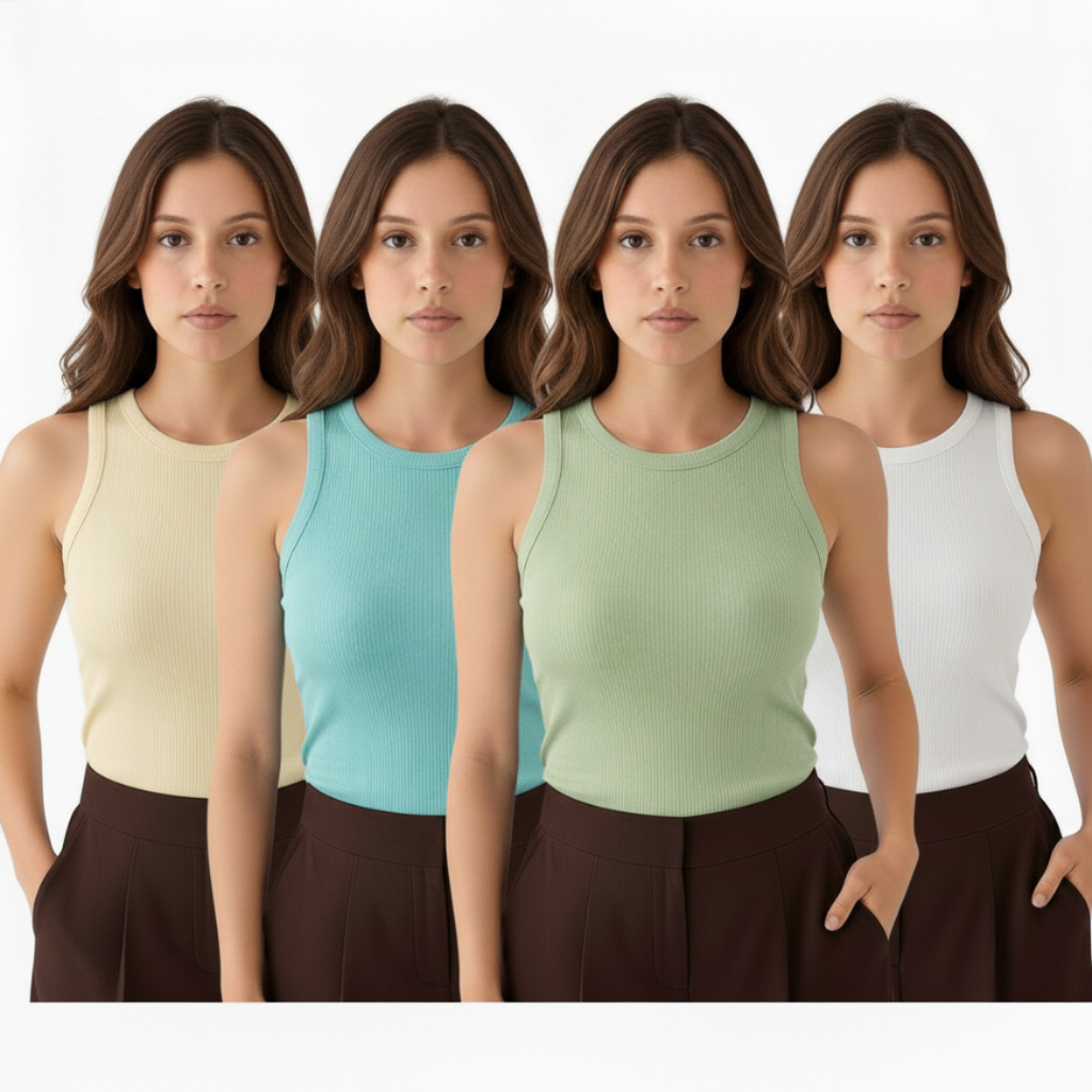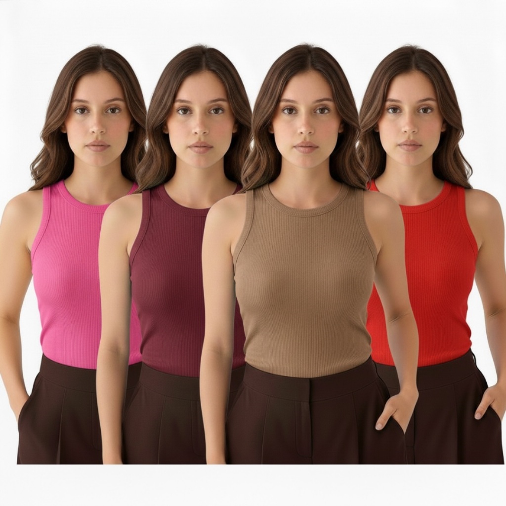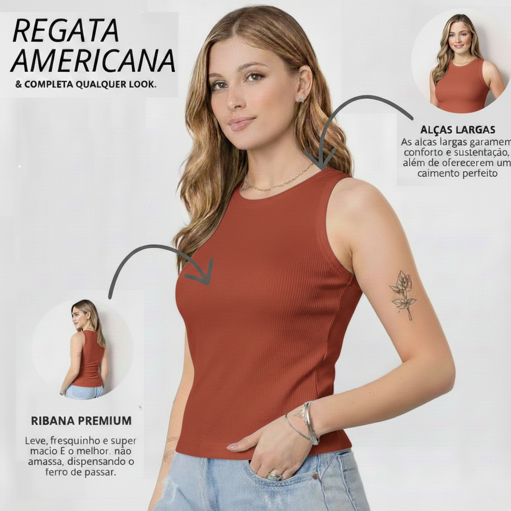 Kit 4 Regata Premium Feminina Modelo Americano Ribana Canelada Algodão e Elastano Primeira Linha