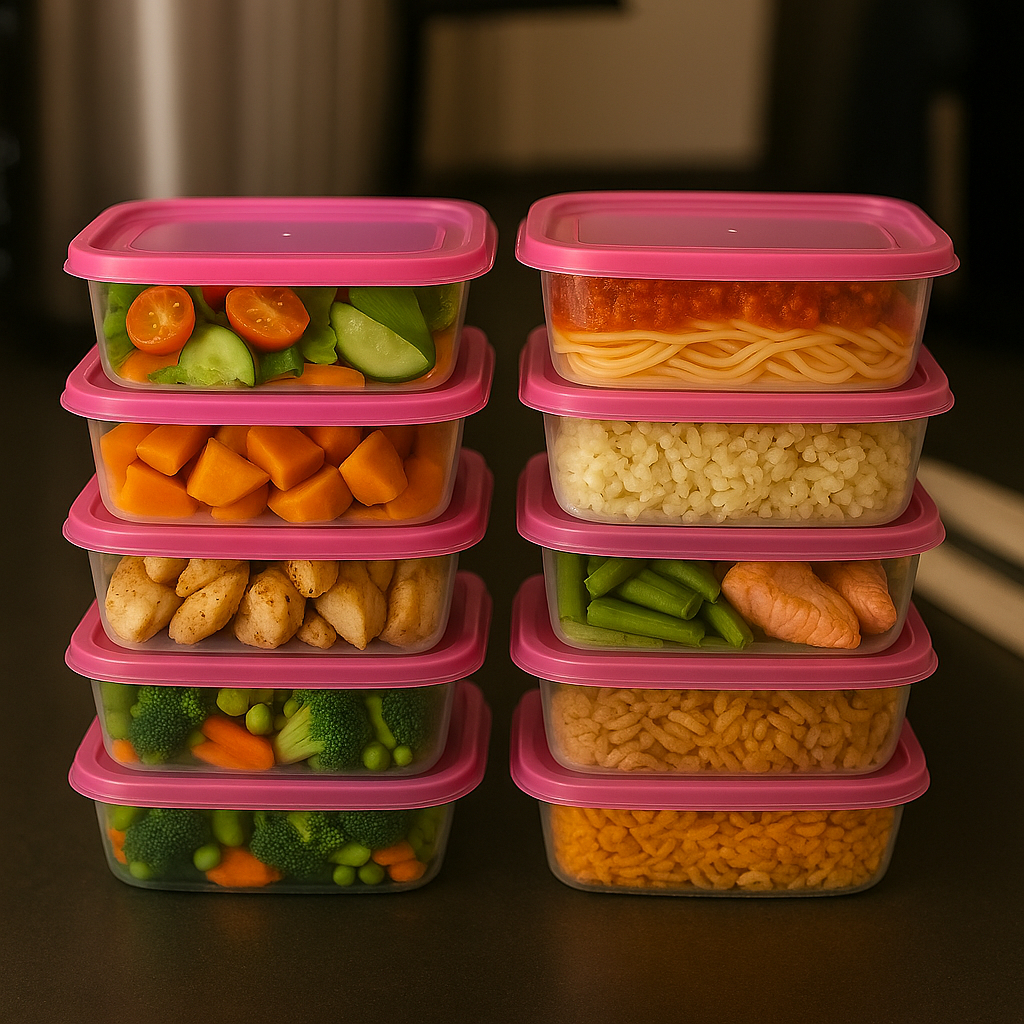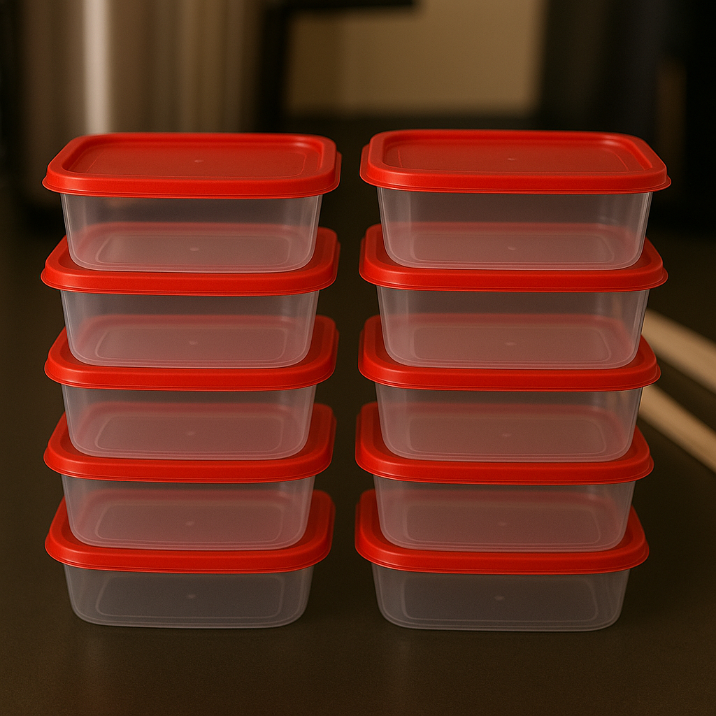 Kit Potes Transparente 1 Litro Rosa, Vermelho, Verde - Vasilha, Marmita Fitness, Presente - BPA Free