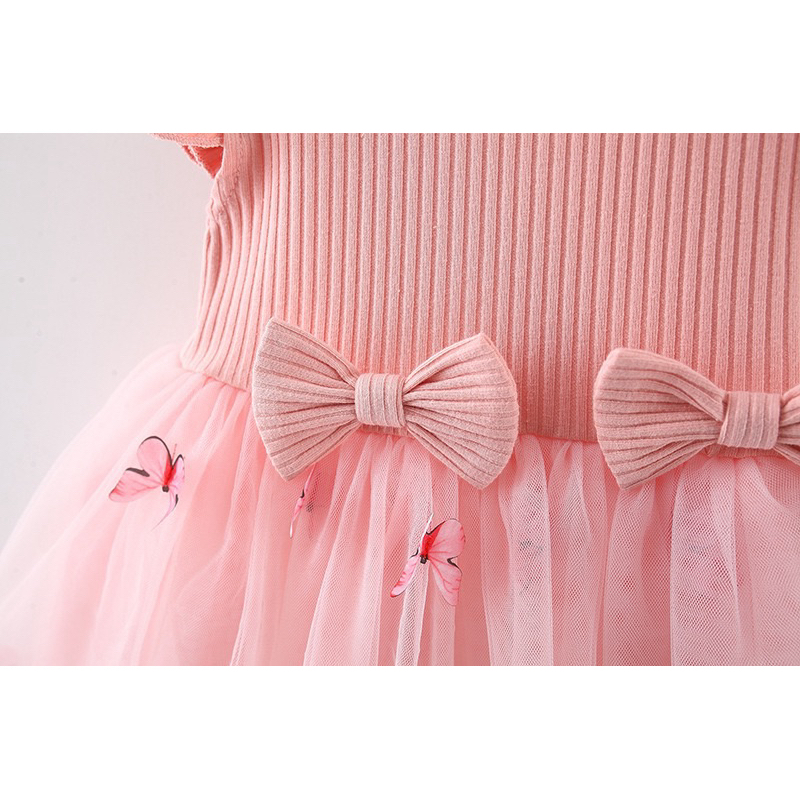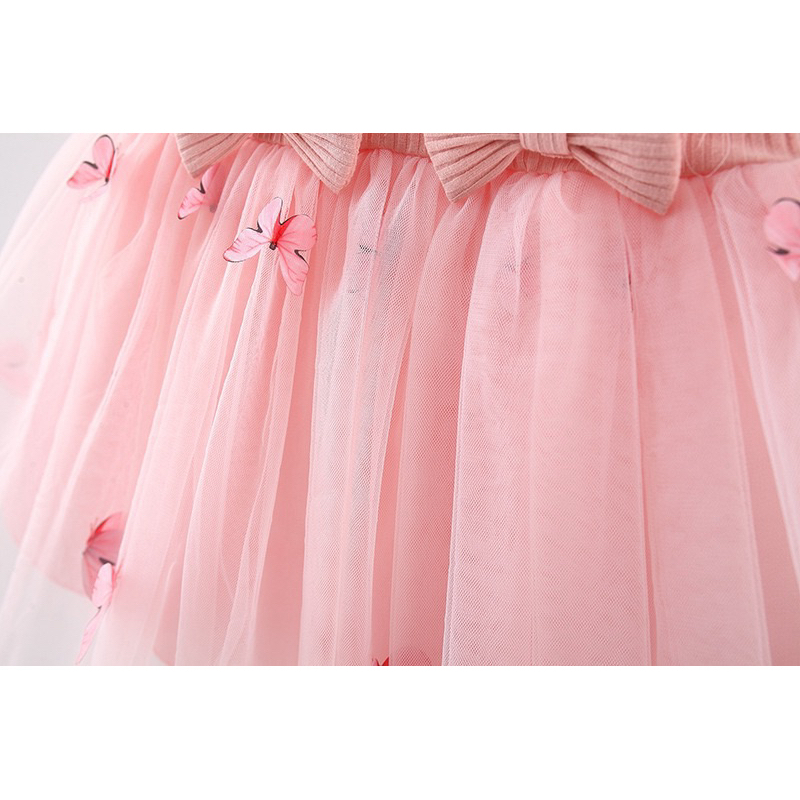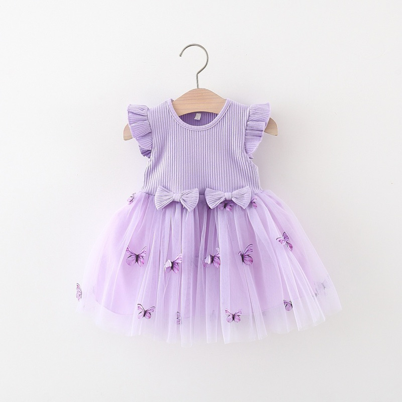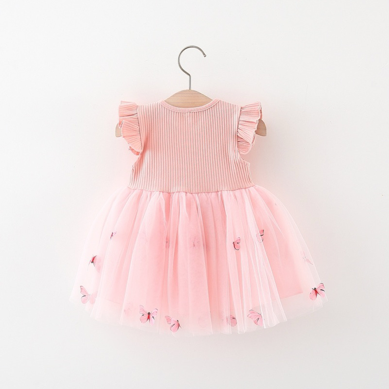 Vestido baby menina borboleta saia tule com laço na cintura estilo na aniversário e festa