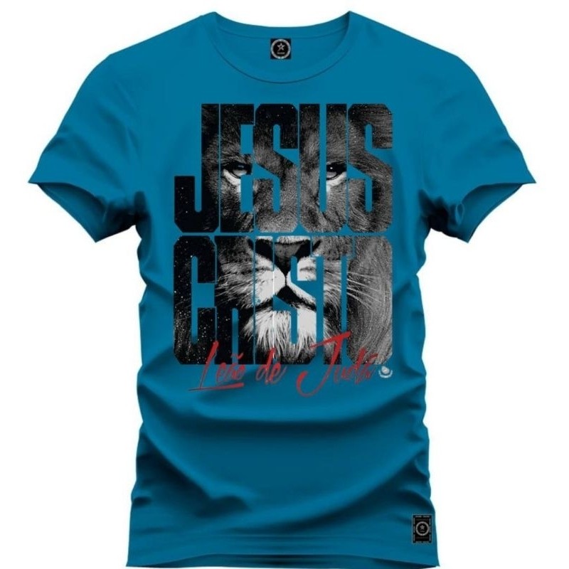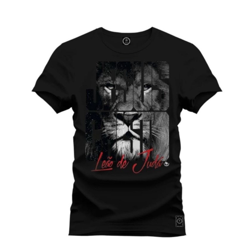 camiseta cristã de leão de Judá e Jesus cristo estampa grande blusas do p ao g5 estra grande veste até 250 kilos