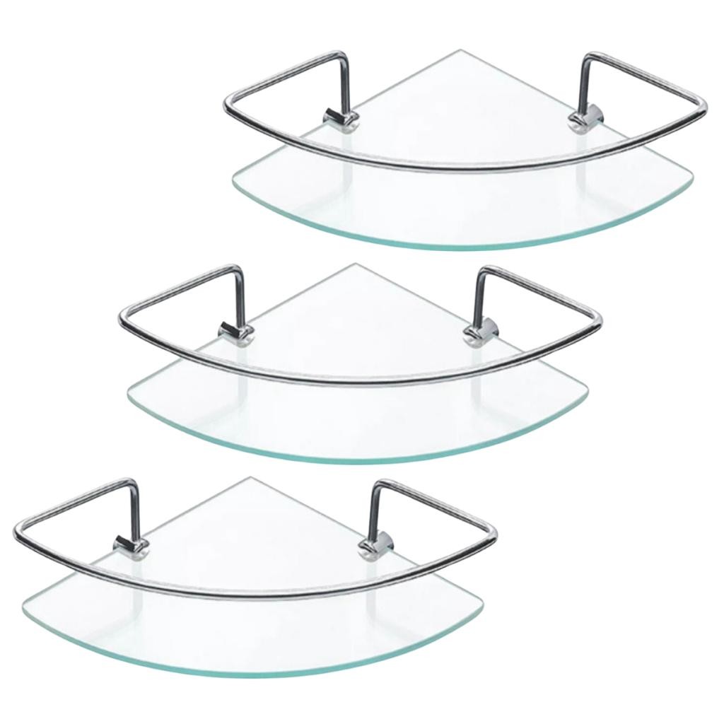 Kit 03 Porta Shampoo Canto Veneza Vidro Fixação Dupla Prateleira para Banheiro e cozinha