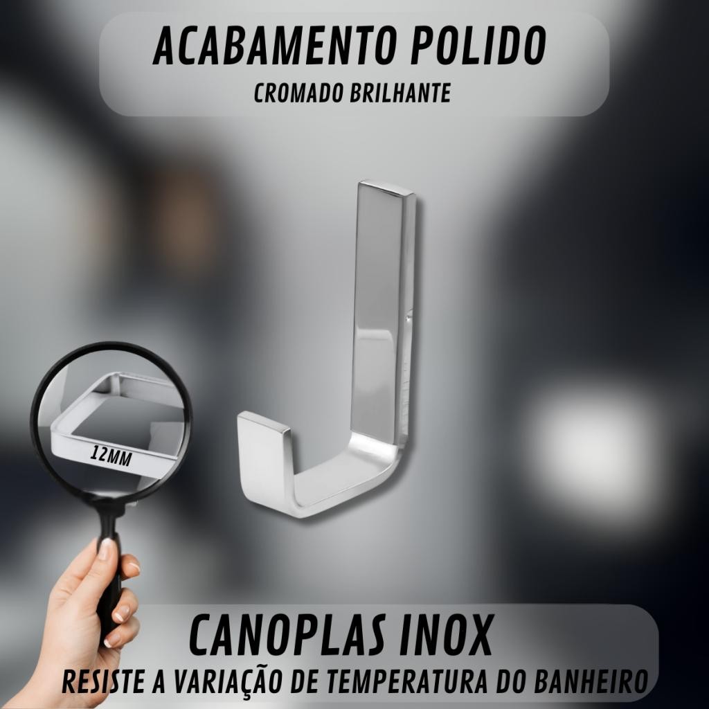 Kit 02 Cabide Quadrado Inox Para Banheiro Fixação Dupla Oculta