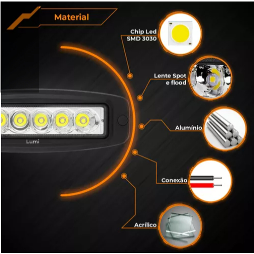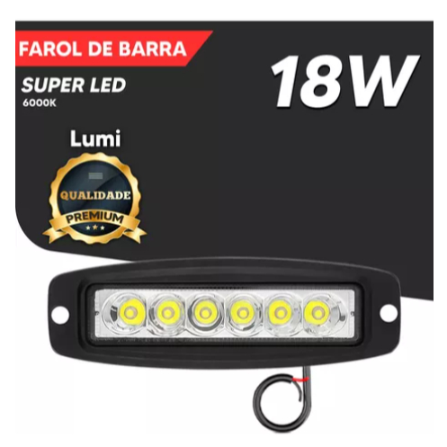 Kit 2 Farol De Barra Led 18w 12v-60v Embutir Auxilar Neblina