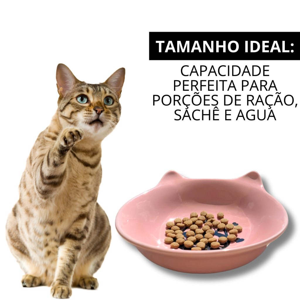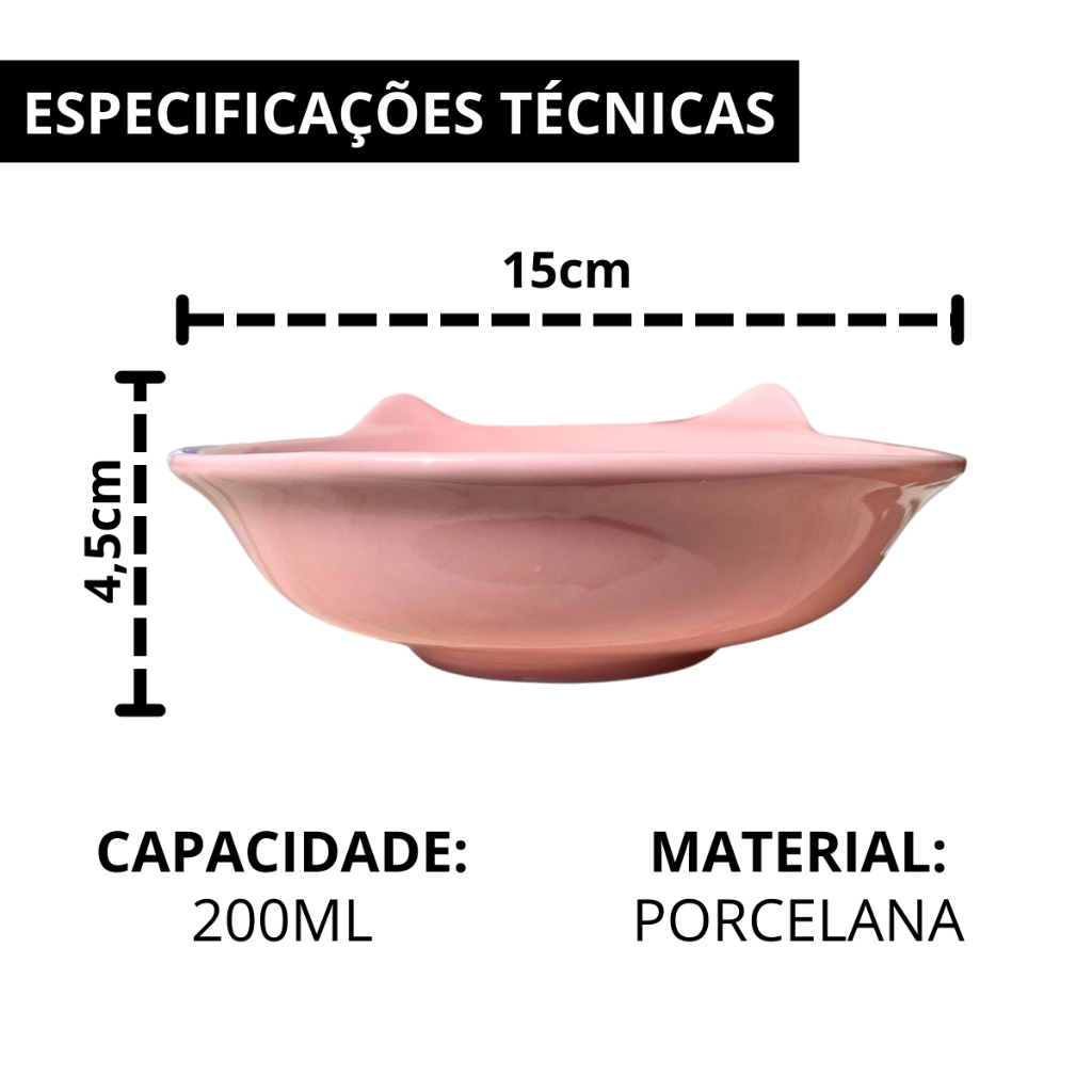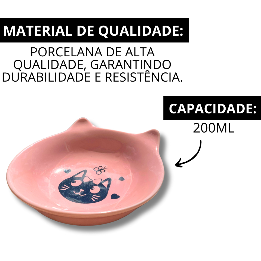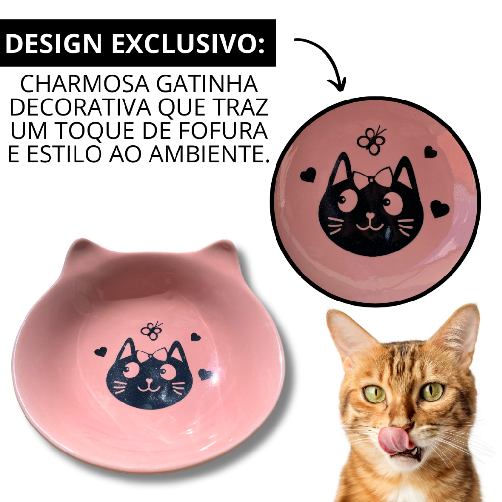 Comedouro Gato Porcelana Decorada 200Ml Gatinha Rosa Exclusivo Orelhinha