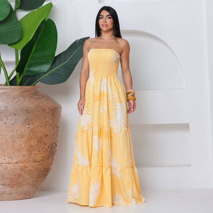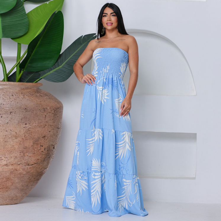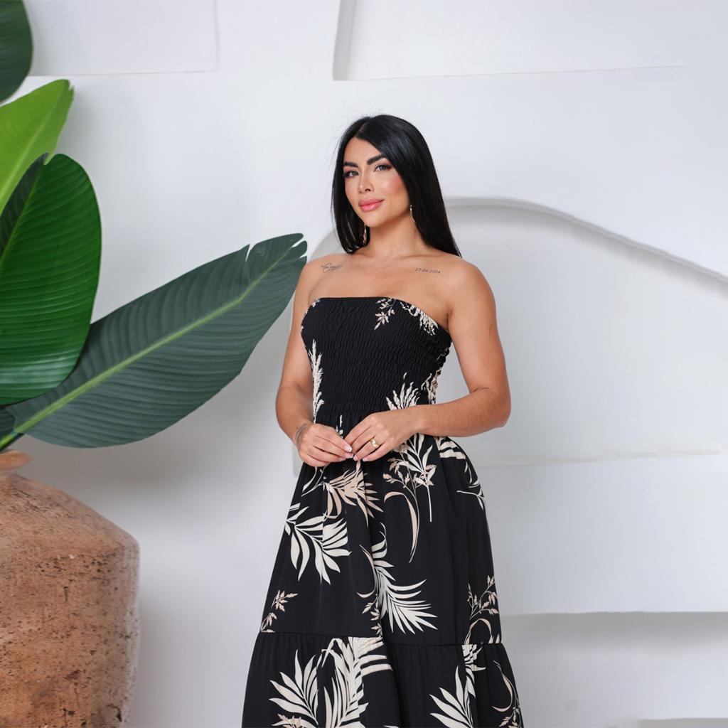 Vestido Feminino Longo Lastex Tomara Que Caia
