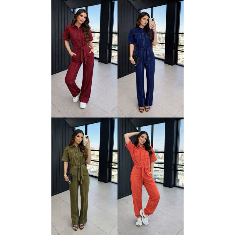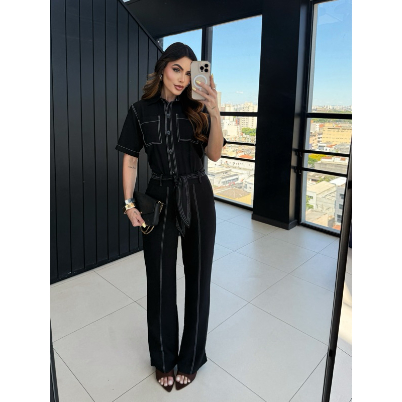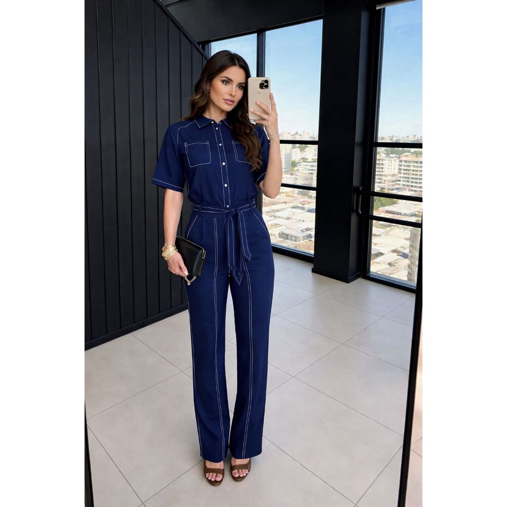 Conjunto Feminino Alfaiataria Pespontado – Camisa + Calça Social