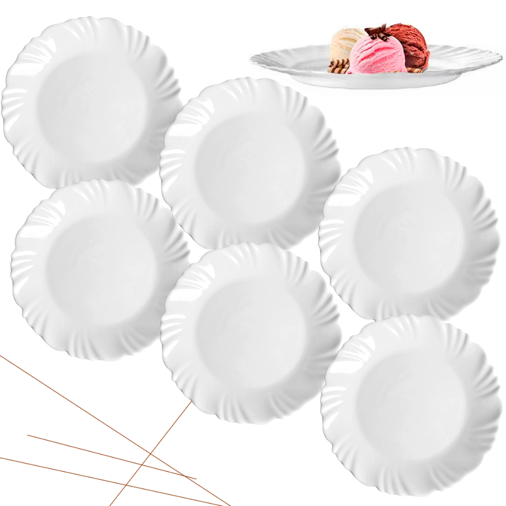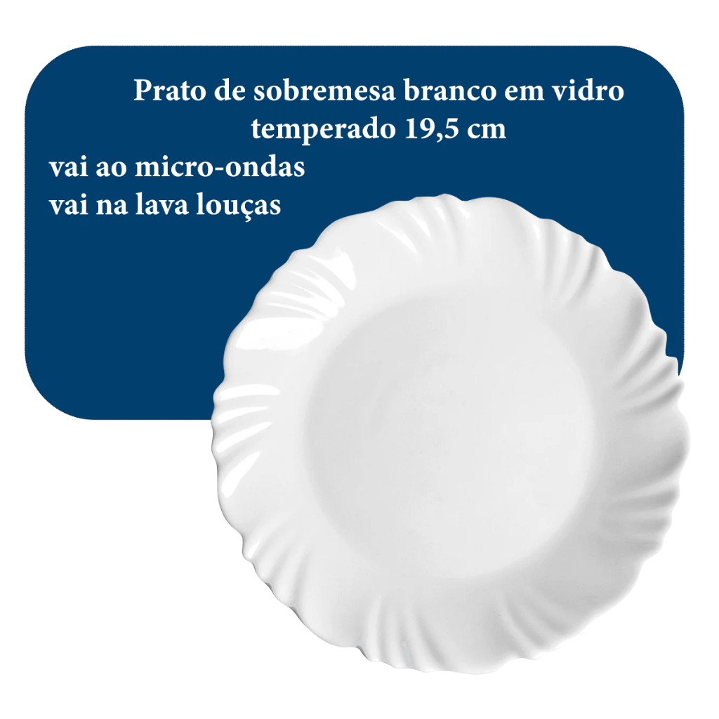 Jogo Prato de Sobremesa 04 / 06 / 12 Unidades Nadir Duralex em Vidro Kit Petala Branco Resistente