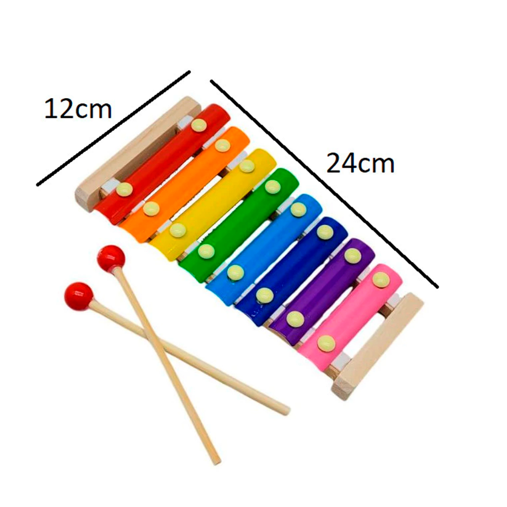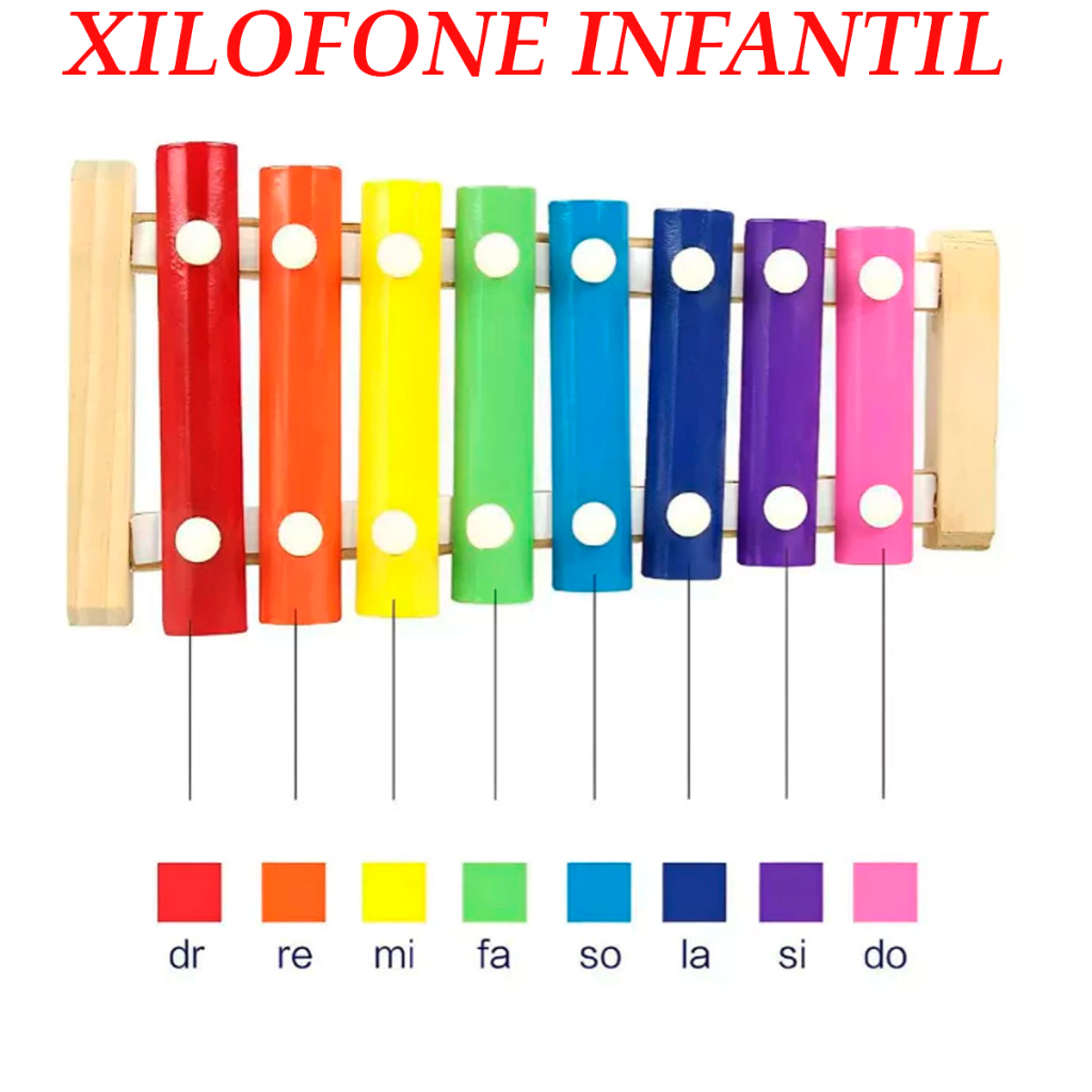 Xilofone Instrumento Musical Infantil Pedagógico Colorido 8 Notas C/2 Baquetas