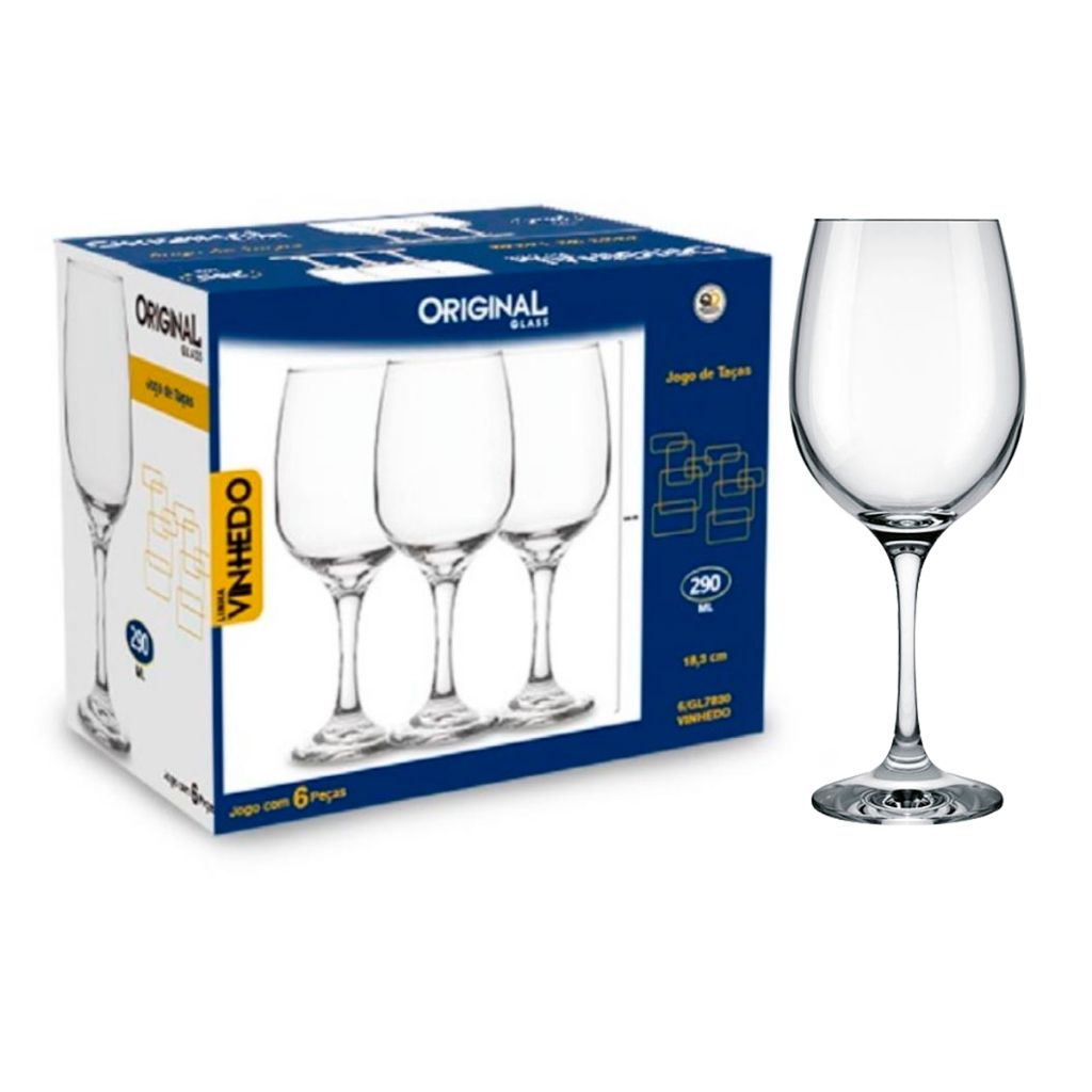 Jogo de Taças de Vidro Original 6 unidades Taça Vinho Vinhedo Água Sobremesa Cristal Luxo