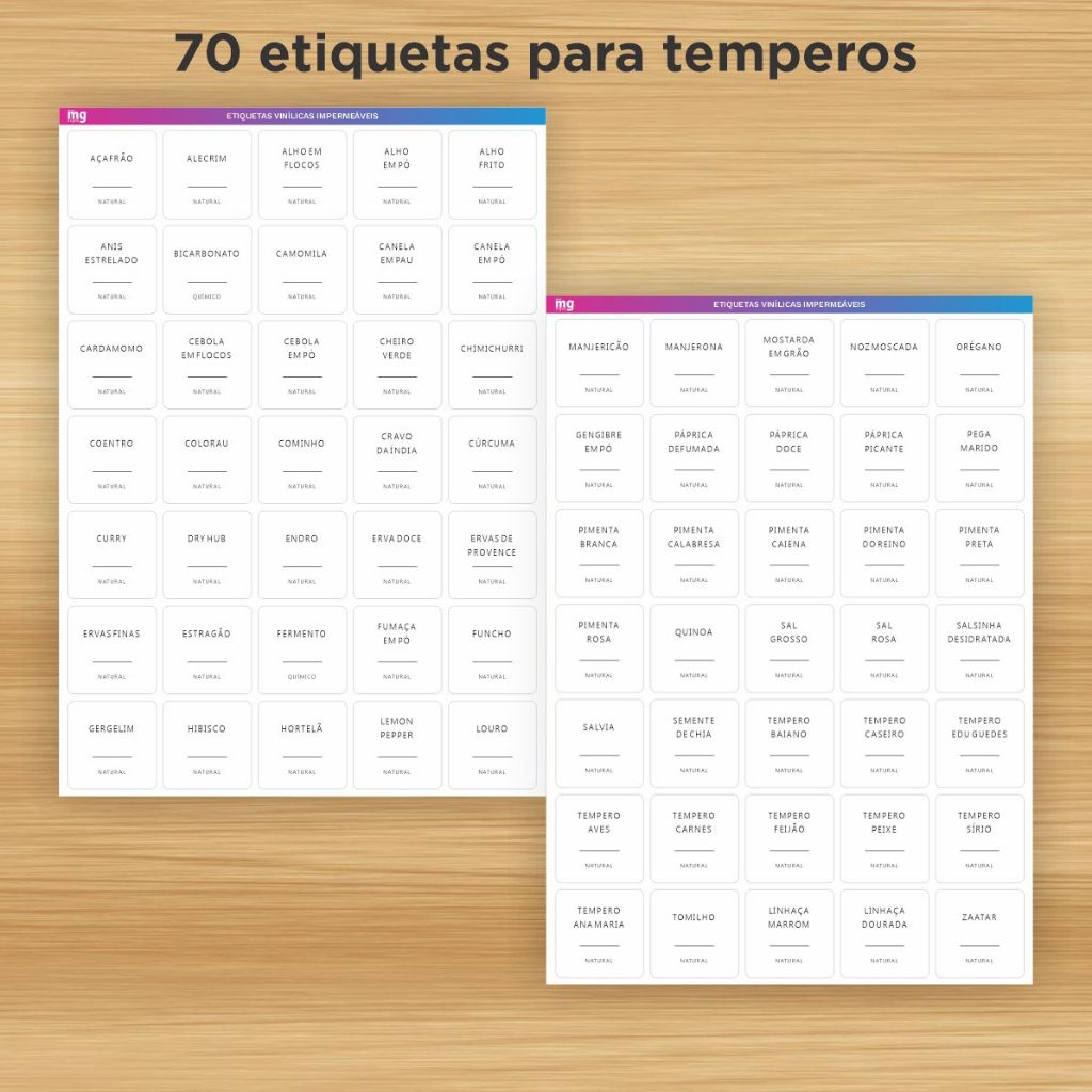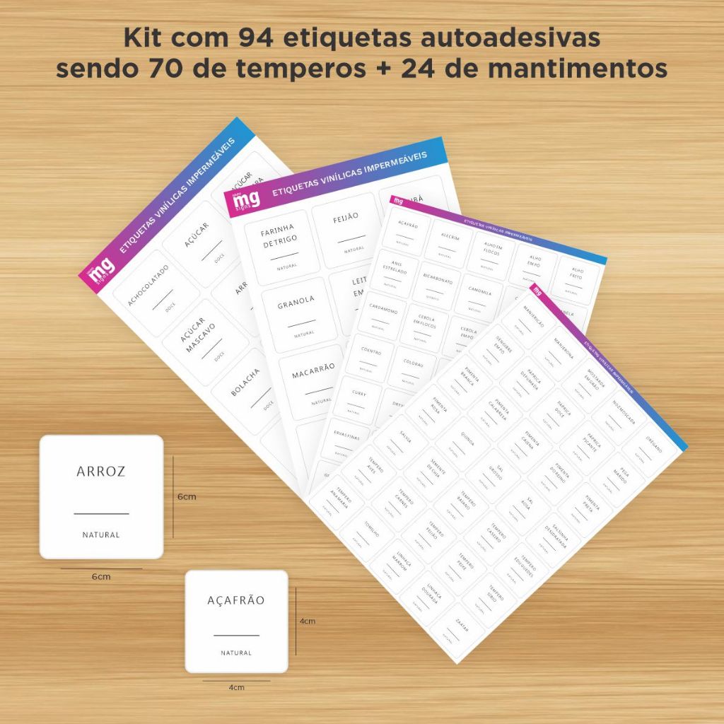 94 Etiquetas Adesivas para Temperos e Mantimentos Cor Branca - Resistente Vinil Lavável