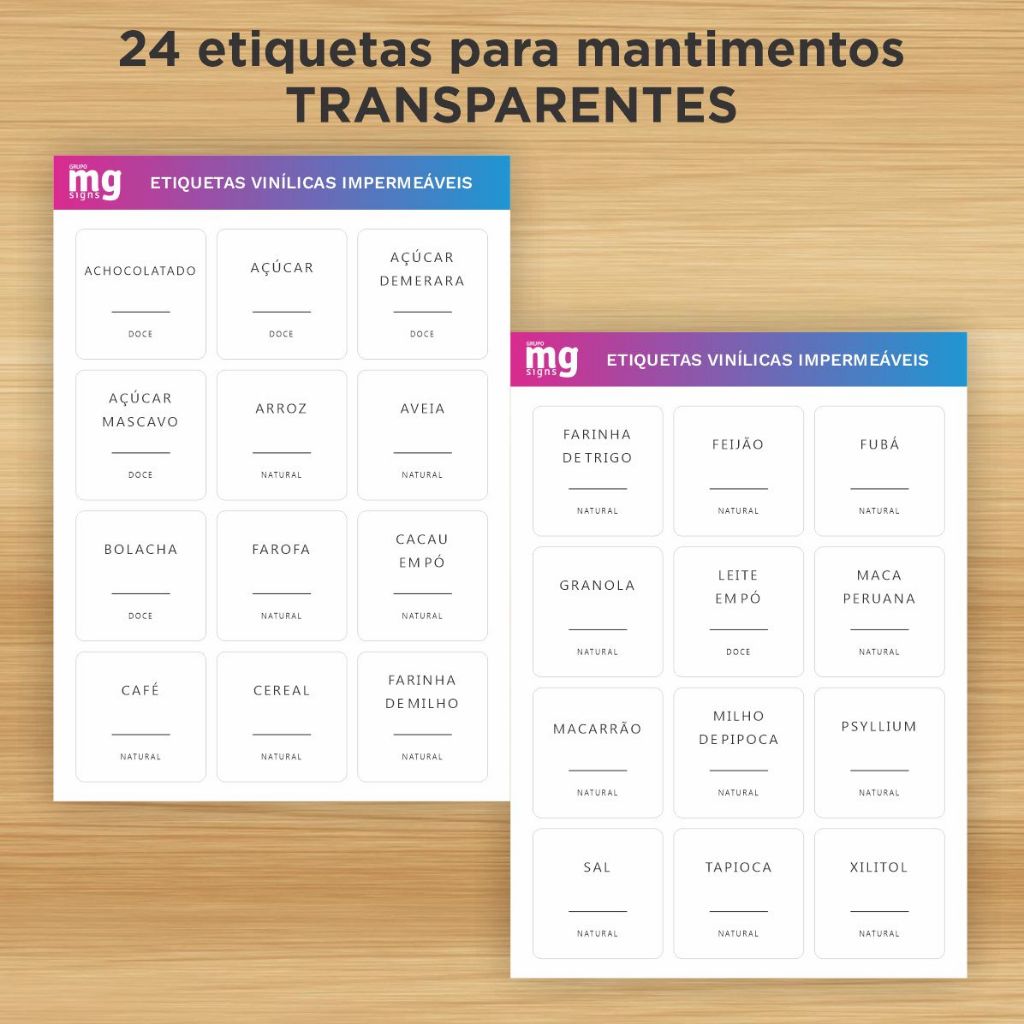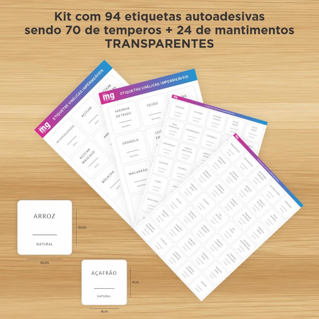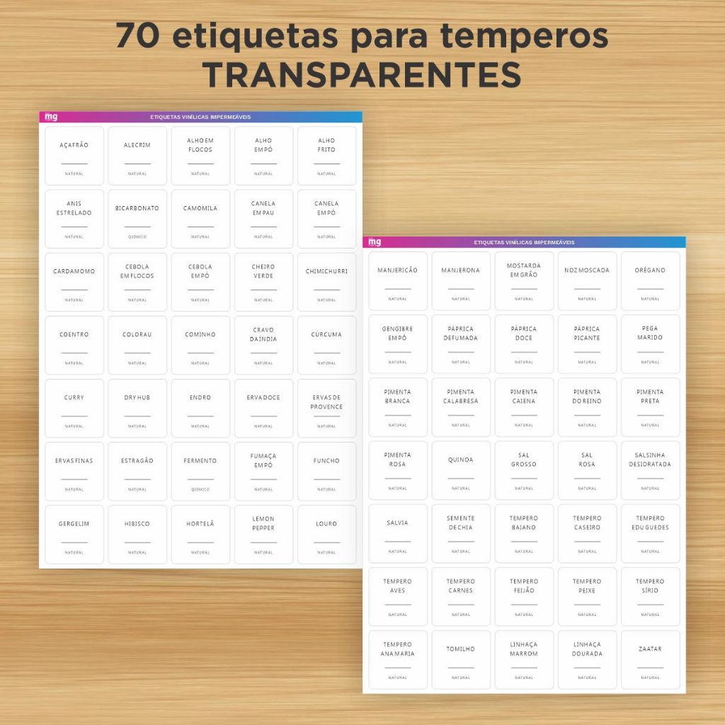 94 Etiquetas Adesivas Para Temperos e Mantimentos Cor Transparente - Resistente Vinil Lavável