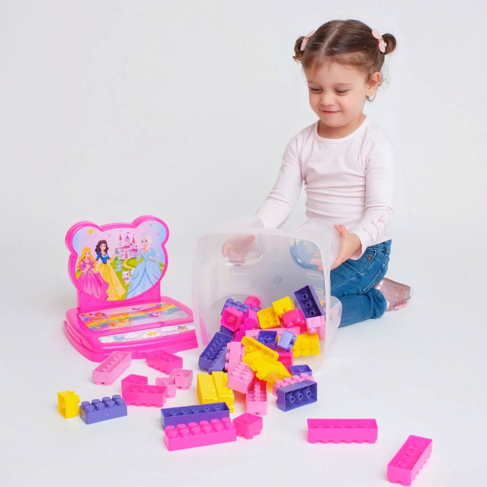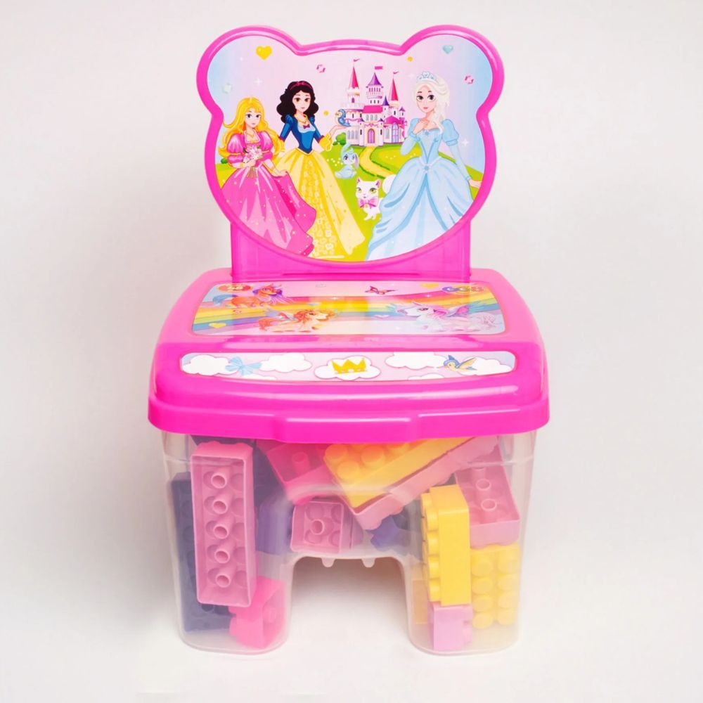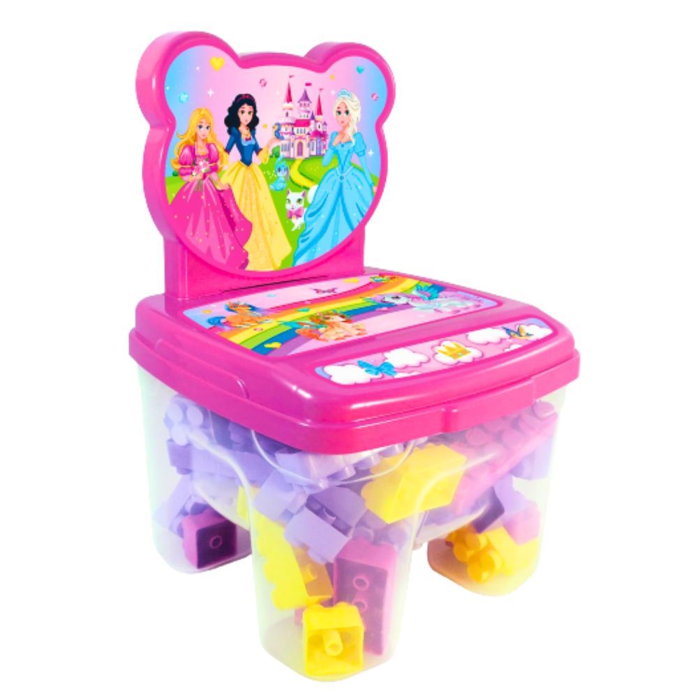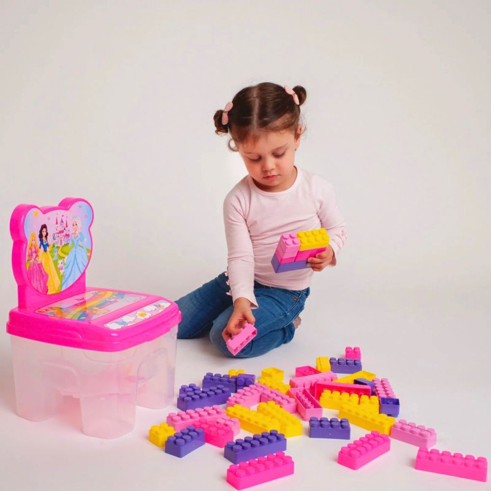 Cadeira Infantil Princesas com Blocos de Montar Encaixe Educativo 48 Peças Grandes