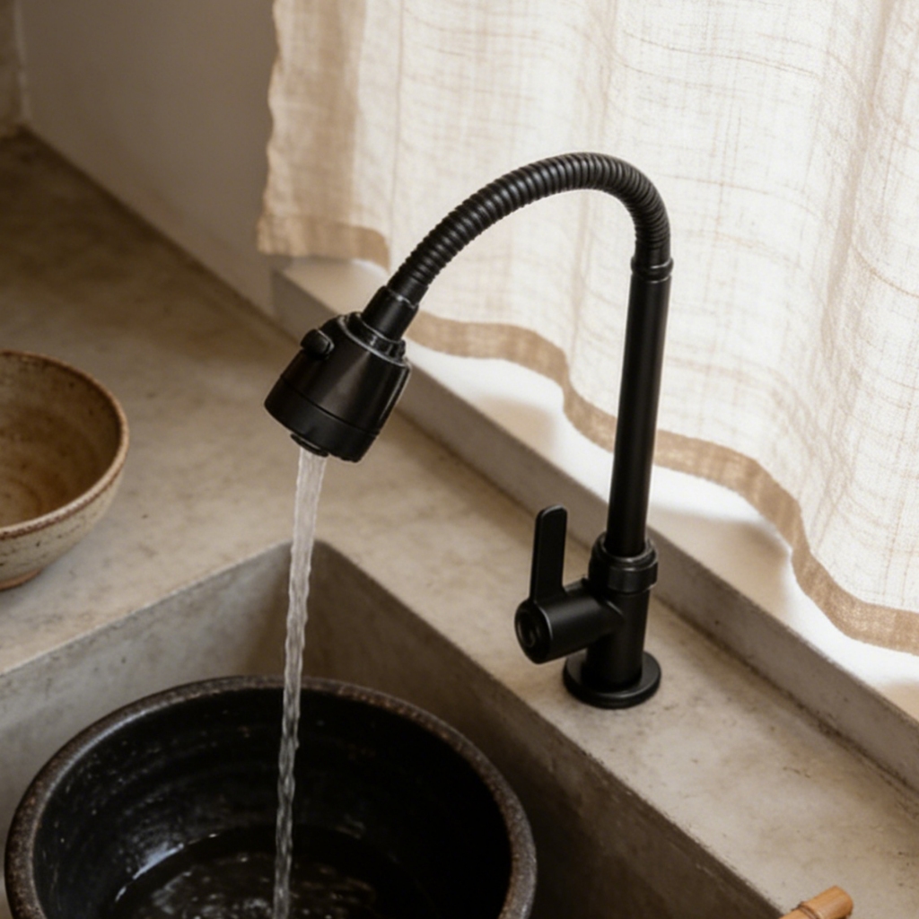 Torneira Fosca De Cozinha De Parede/Pia De Silicone Com 2 Jatos , 1/4 Volta , Cabeça De Chuveiro Preta-Design De Emenda