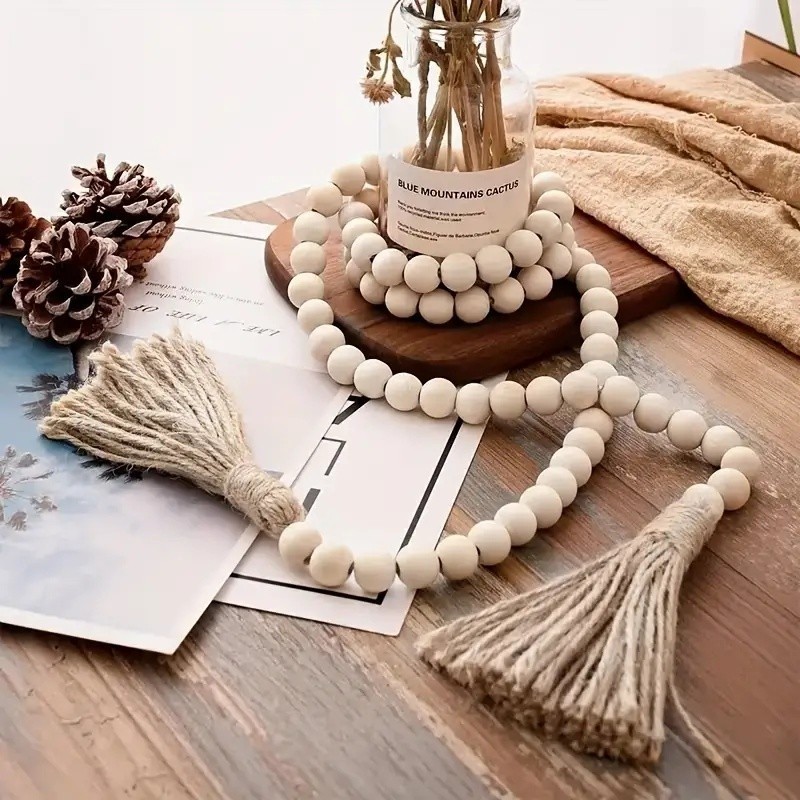 Talão De Madeira Natural Guirlanda Com Juta Rústico Pendurado Borlas Corda Artesanal De Fazenda De Parede Ornamento DIY