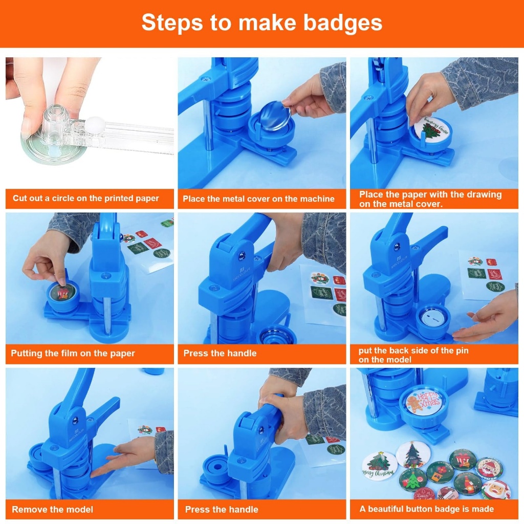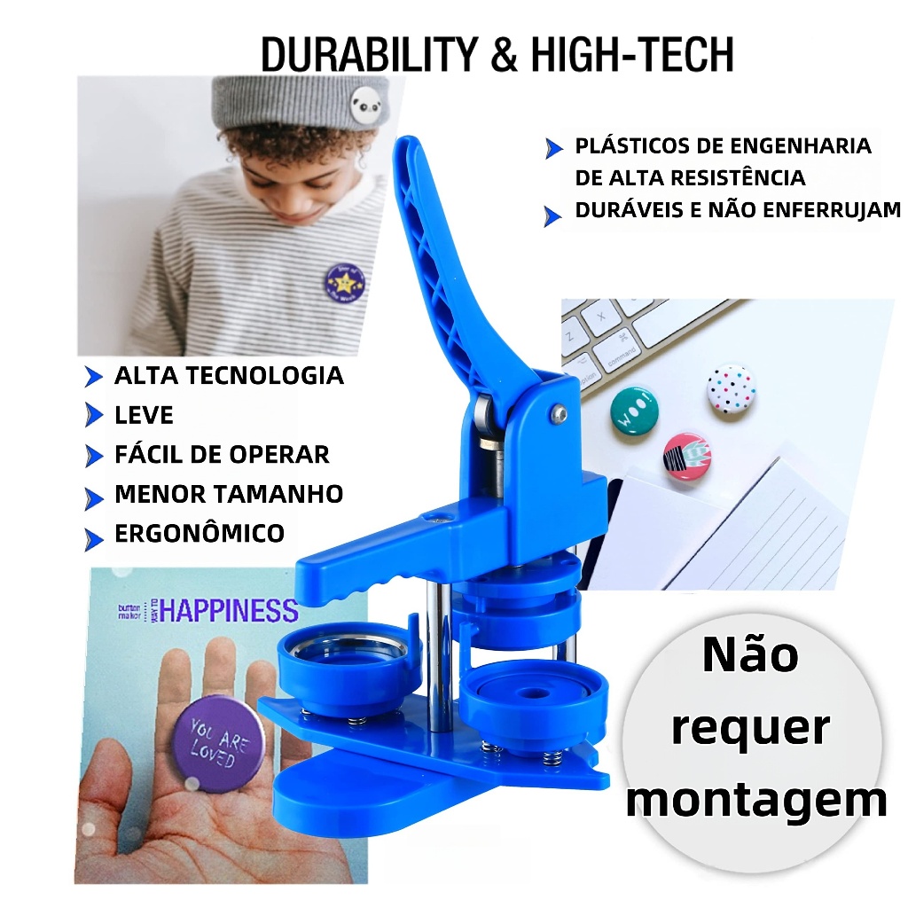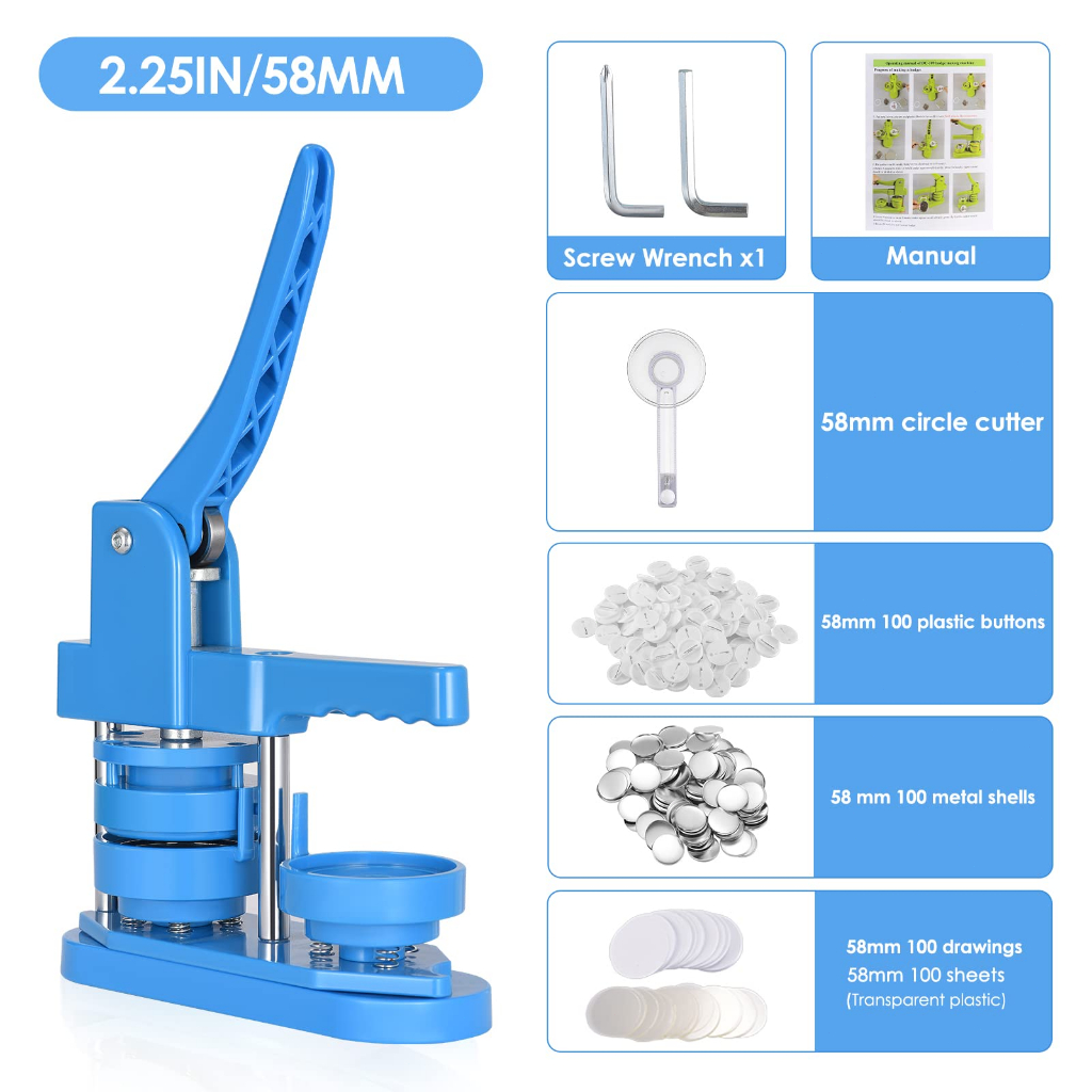KIT Máquina De Crachás 3 Em 1 Deslizante DIY Button,Broche, Crachá 32/44/58mm 100 Consumíveis Ou um quadrado de 50 mm