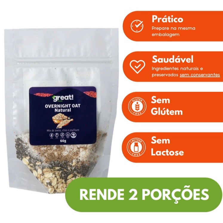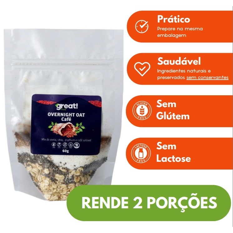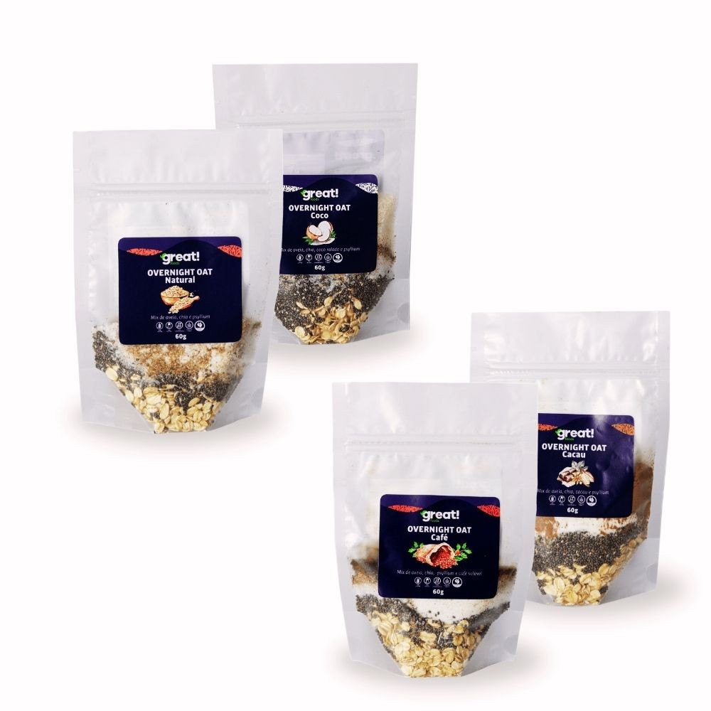 Kit Overnight 4 sabores Natural Cacau Café e Coco sem glúten e sem lactose