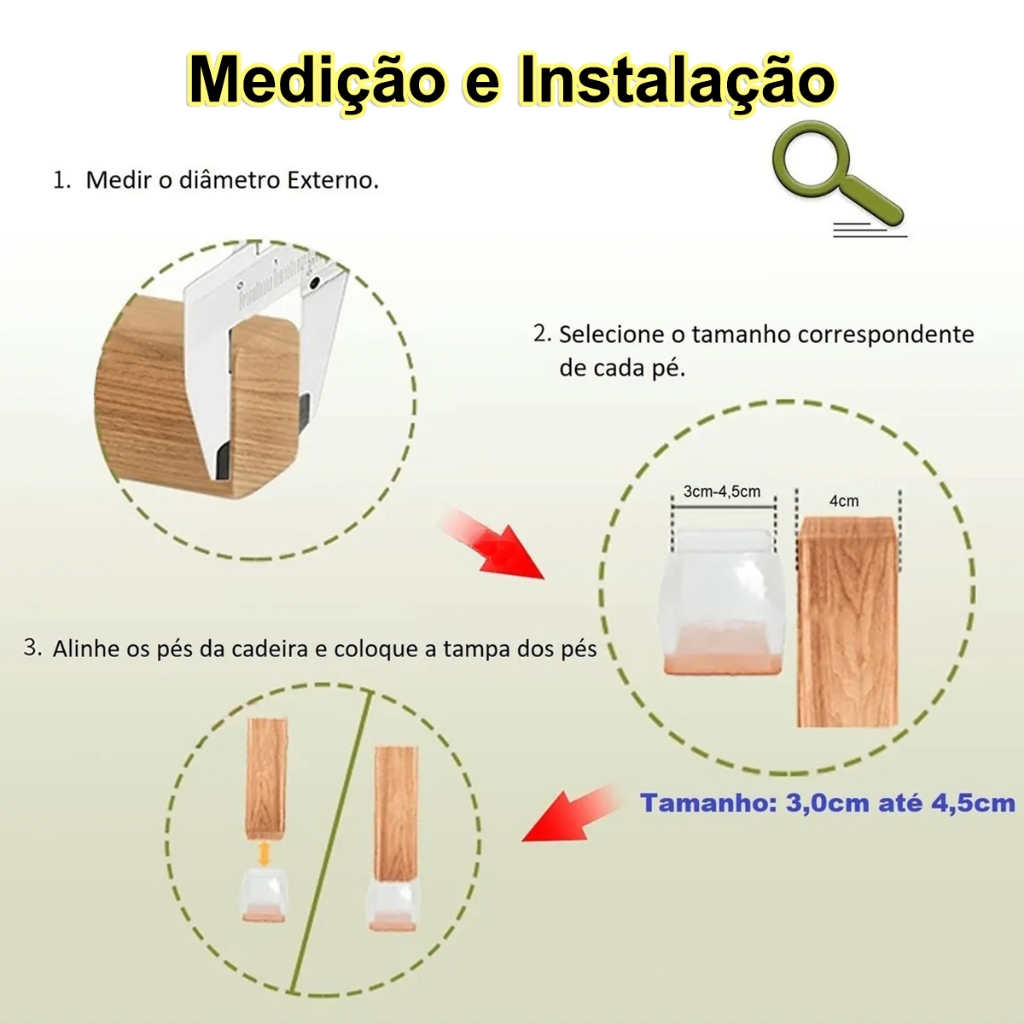 kit 8/16 Protetor de Silicone e Feltro Para Pé de Cadeirapés para quadrado grande Protetor de mesa Feltro Evita Riscos