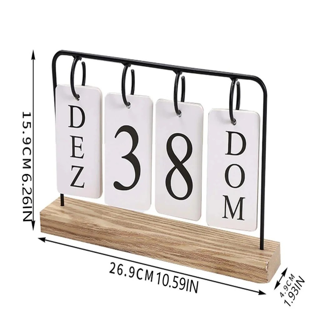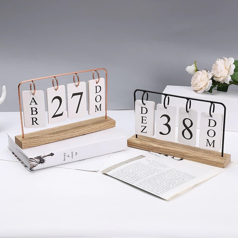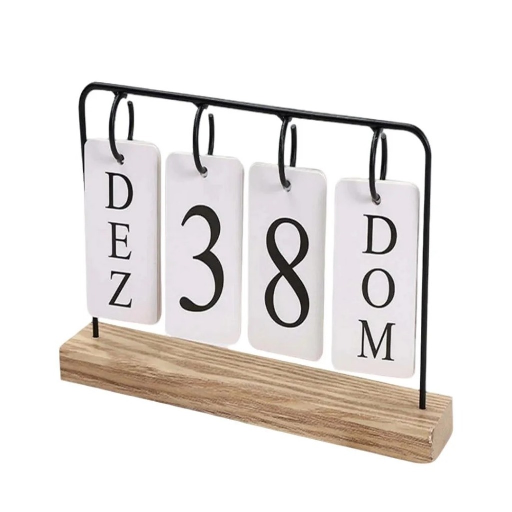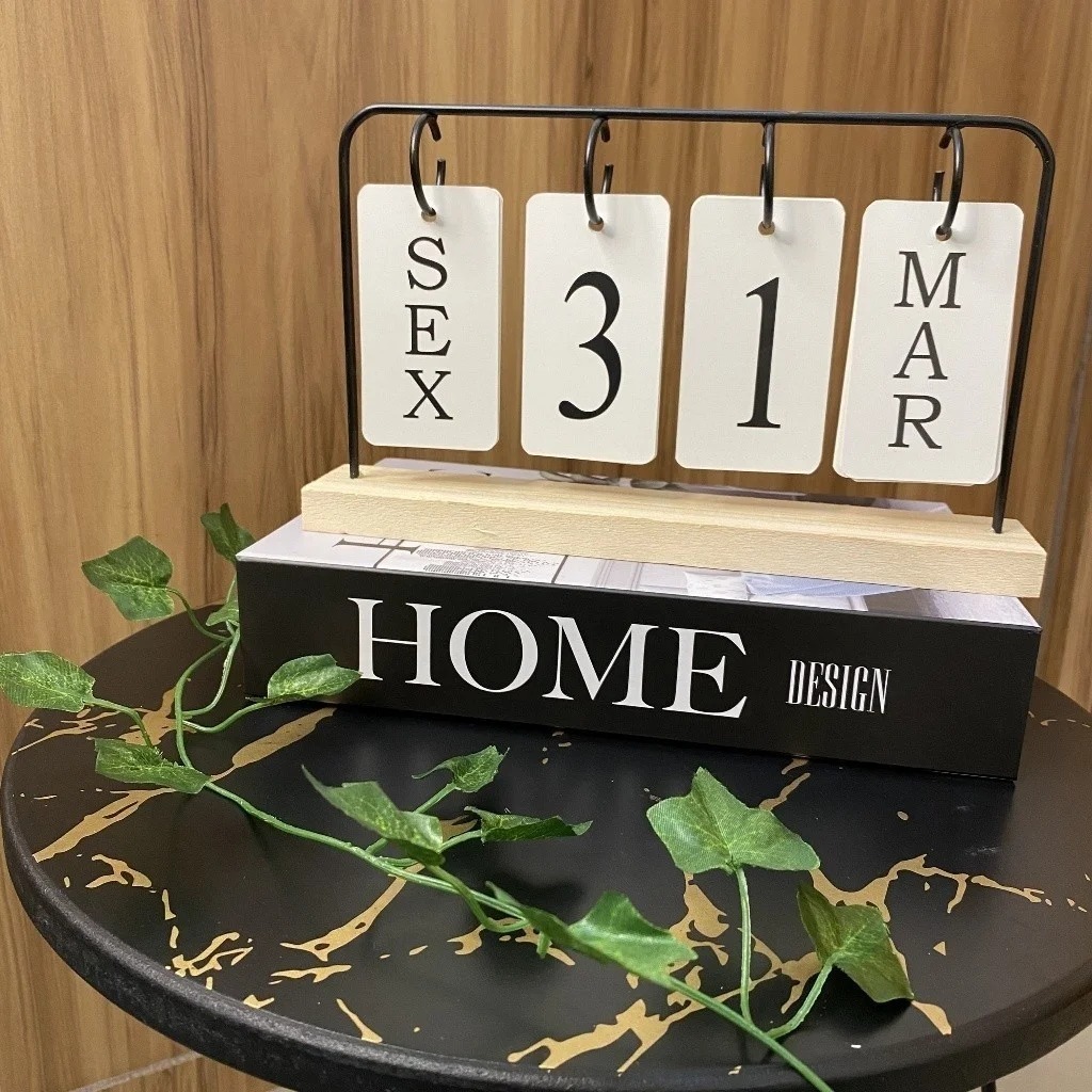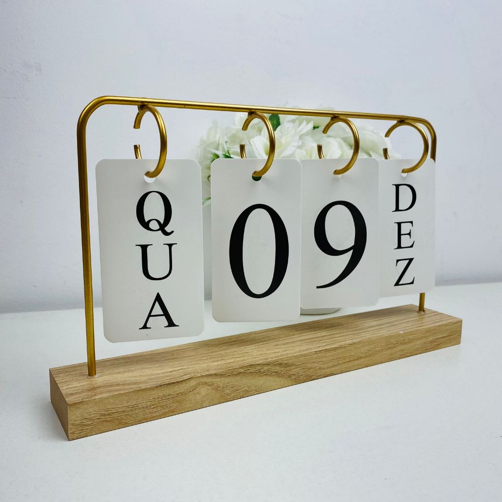 Calendário de Mesa Decorativo com Plaquinhas Preto Dourado Permanente Escritório