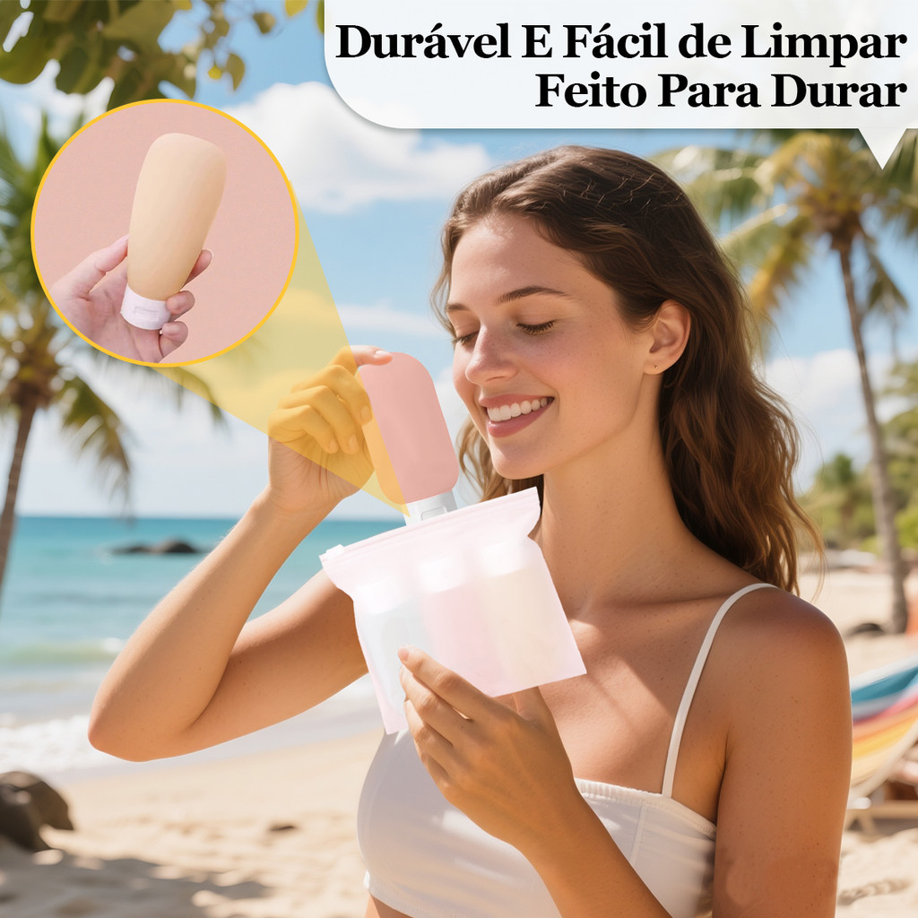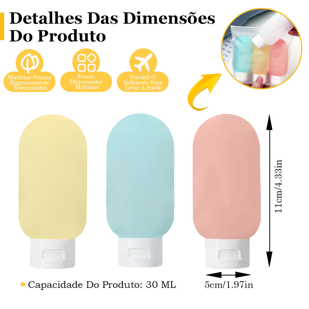Kit 6 Viagem Frascos Pote Porta Creme Shampoo Cosméticos