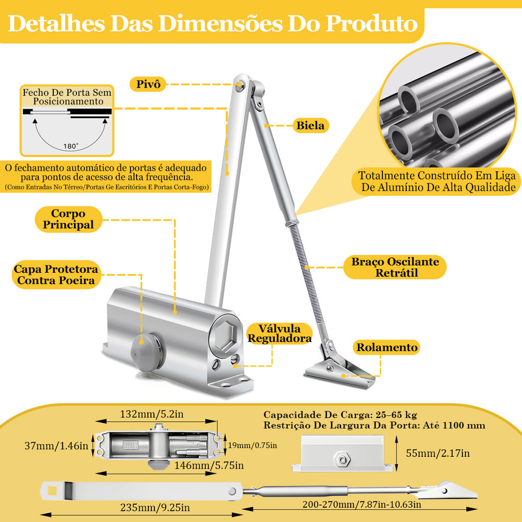 Mola Aérea Para Fechamento De Porta Automático Até 65kg