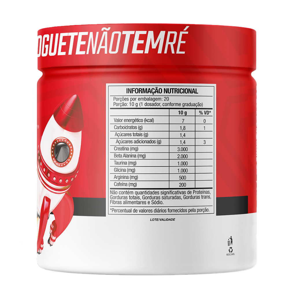 FTW Foguete Não Tem Ré Pote 200g - Suplemento com Creatina, Cafeína, Beta alanina, taurina, arginina