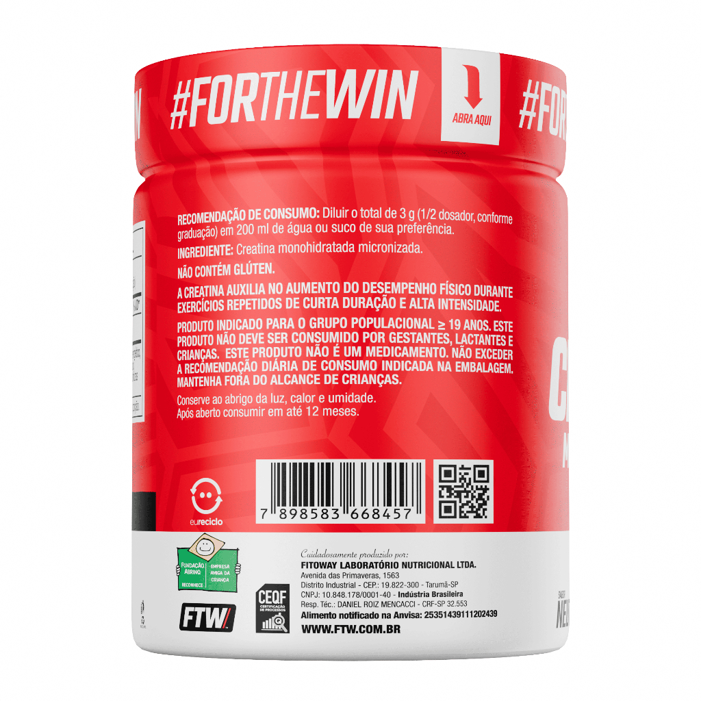 FTW Creatina Monohidratada Pote 1kg - Energia, Força Muscular 100% Pura - Sabor Neutro