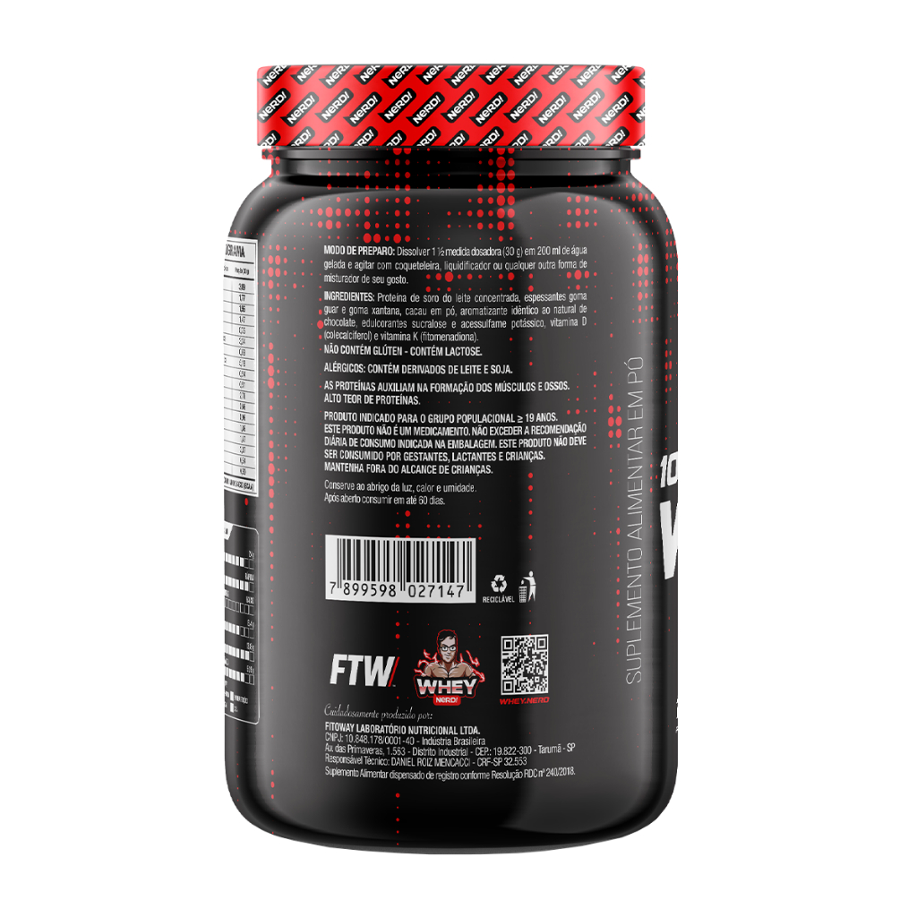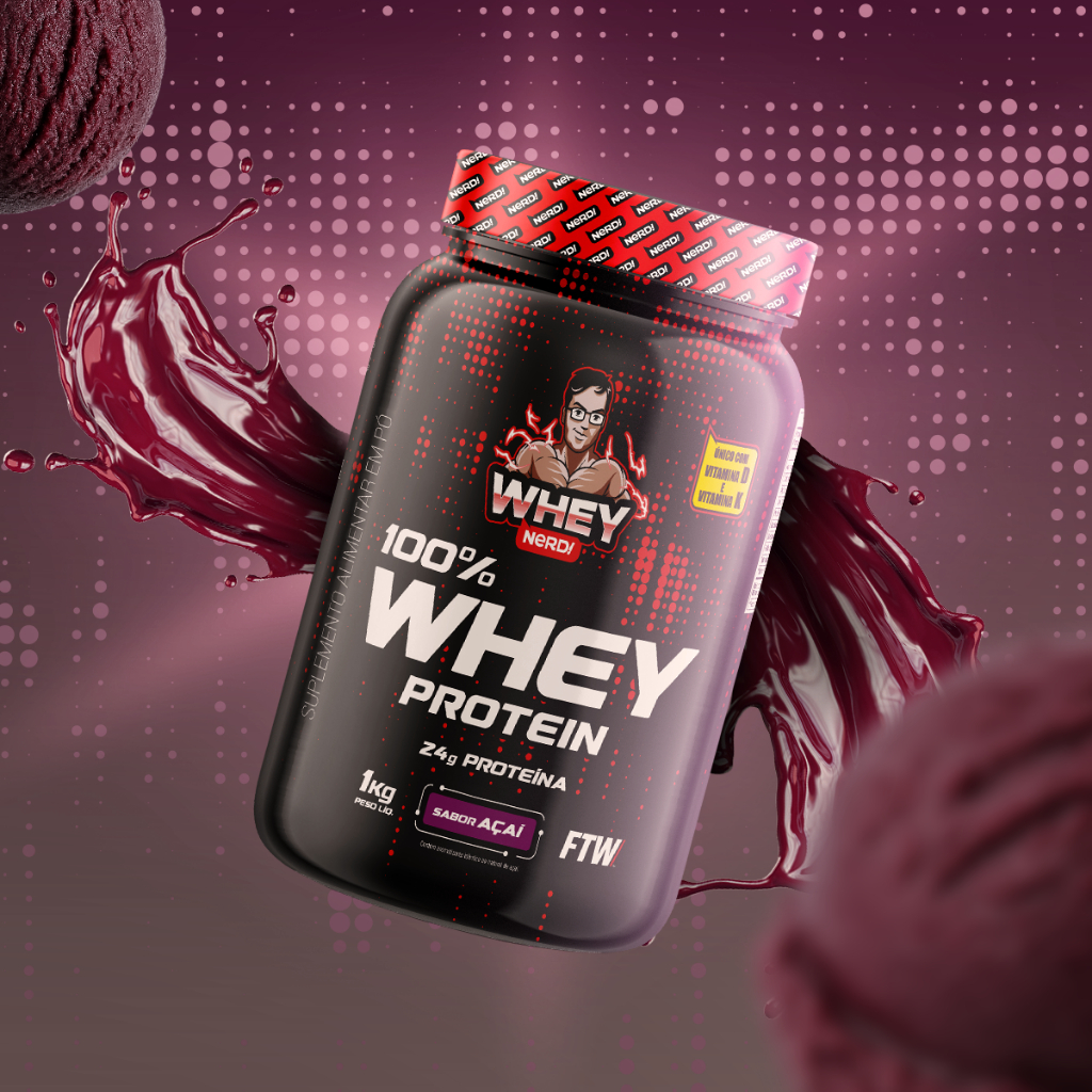 100% Whey Whey Nerd Sabor Pote 1kg - Proteína Concentrada - Sabores
