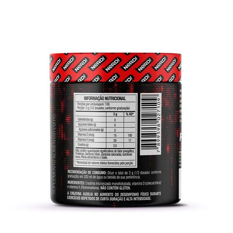 Creatina Monohidratada Pote 300gr Pura 100% Whey Nerd - Sabor Neutro