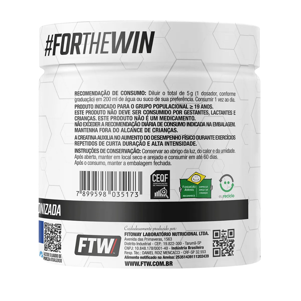 FTW Creatina Monohidratada Pura Ultramesh® Pote 300g - Ultra fina Micronizada Mesh 500