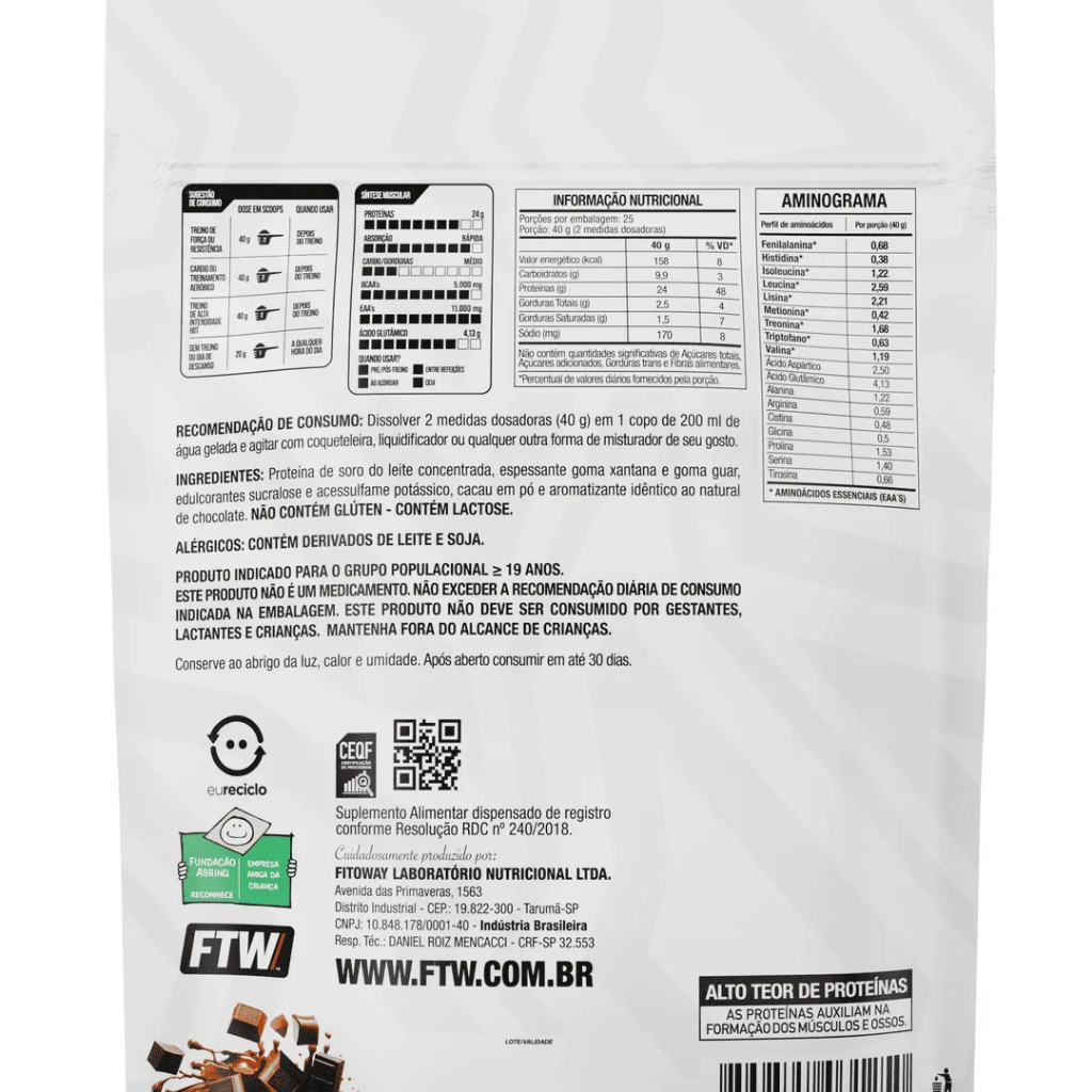 Kit 2X 100% Whey Protein Refil 1KG FTW - 24g Proteína Por Dose
