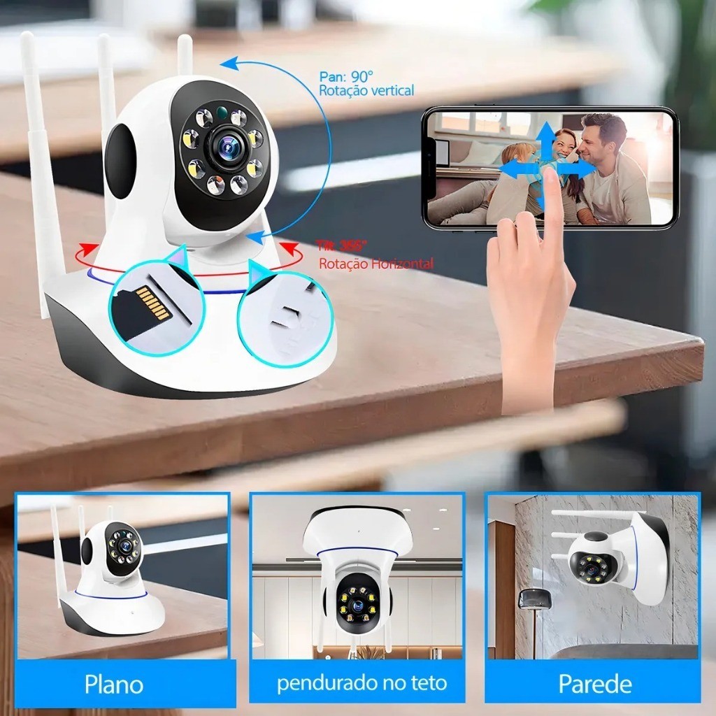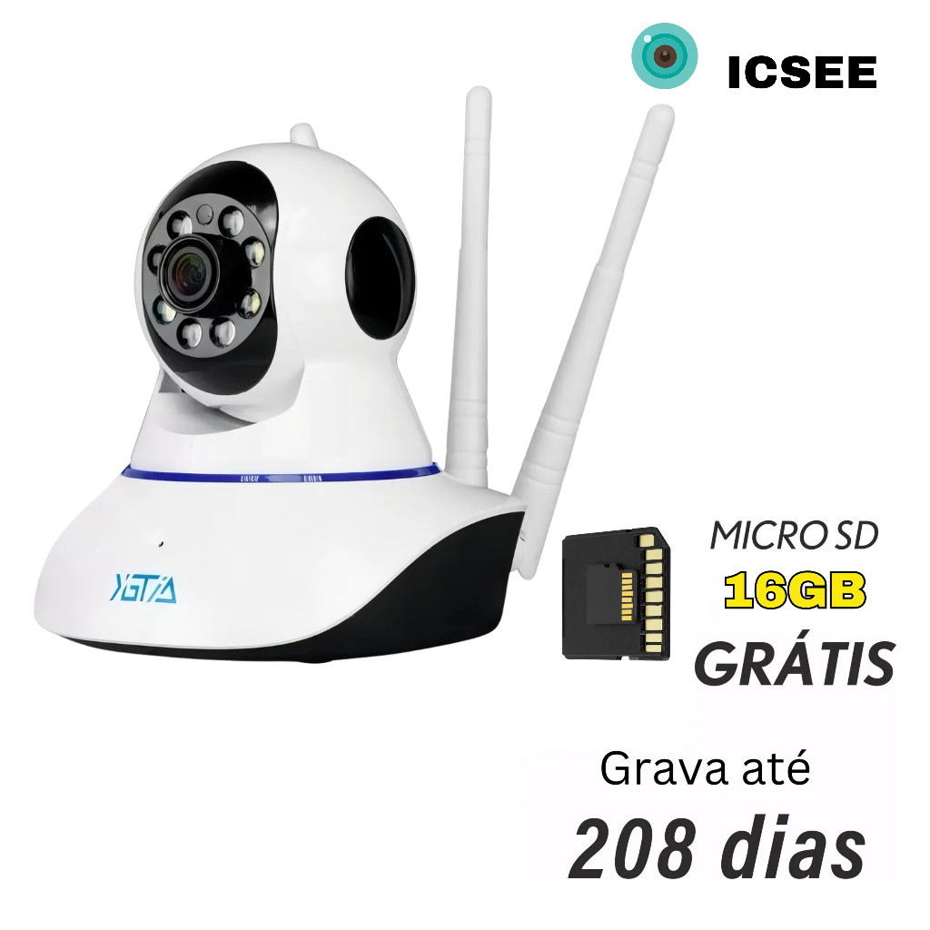 Camera Ip 3 Antenas Wifi Wireless 3° Geração Visão Noturna + MICROSD 16GB