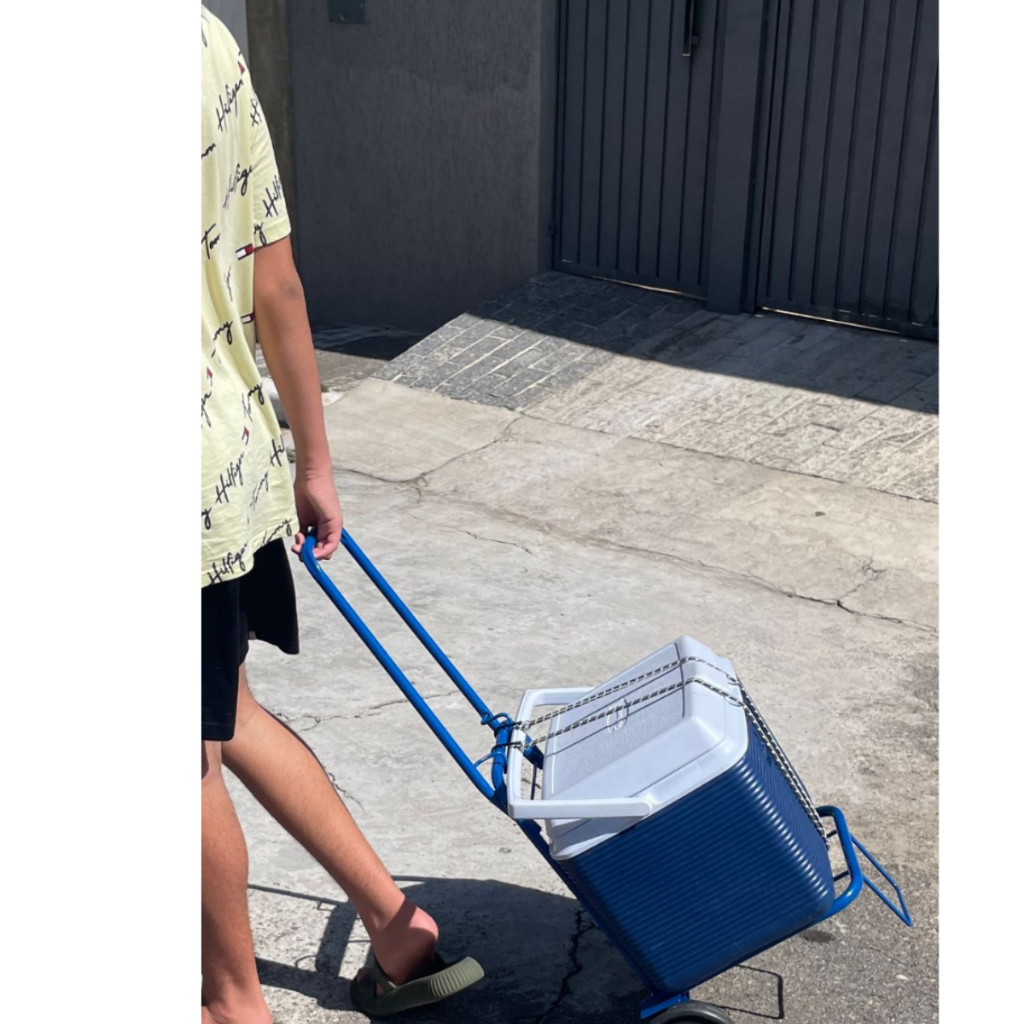 Carrinho Azul Transporta Cooler Praia Anda Na Areia Verão