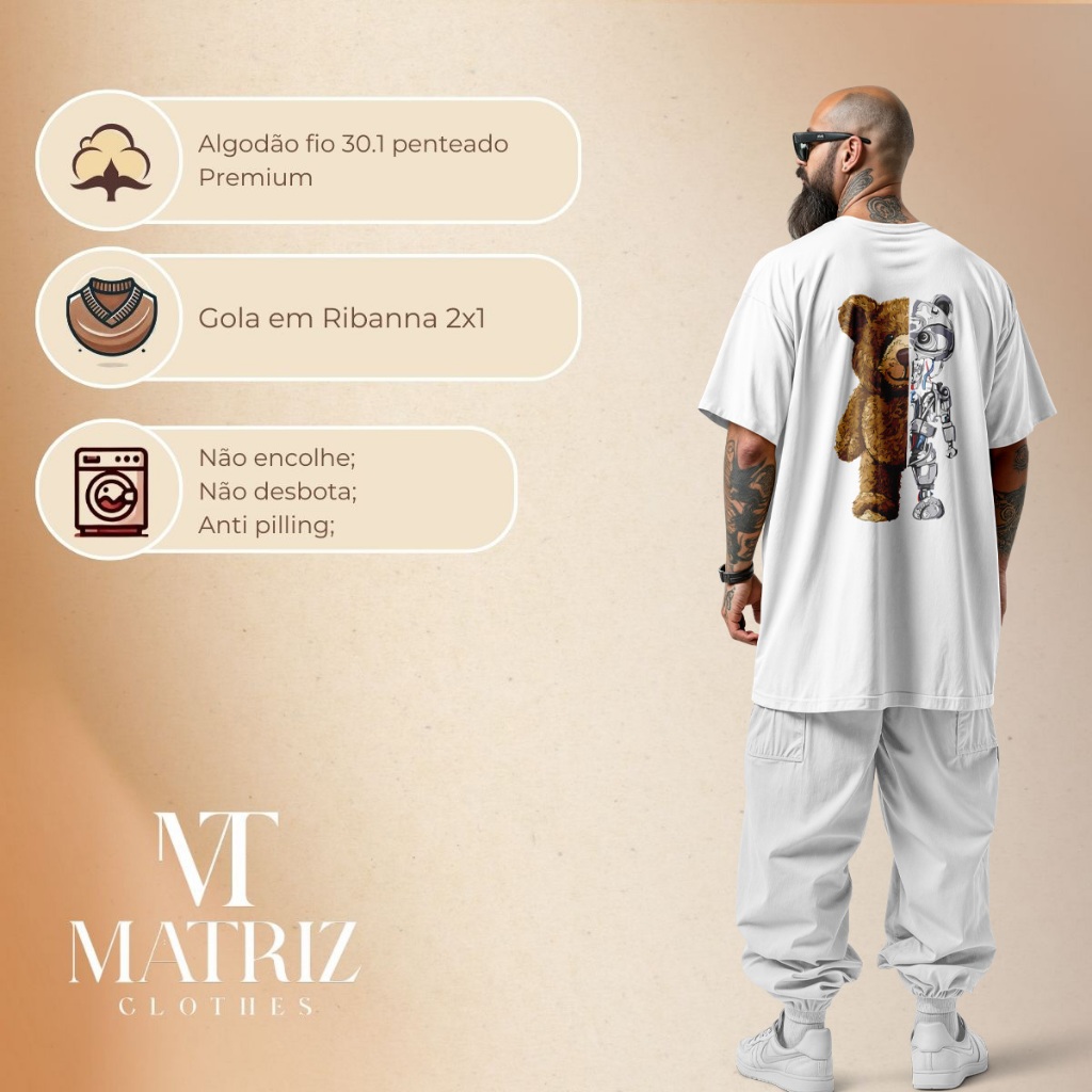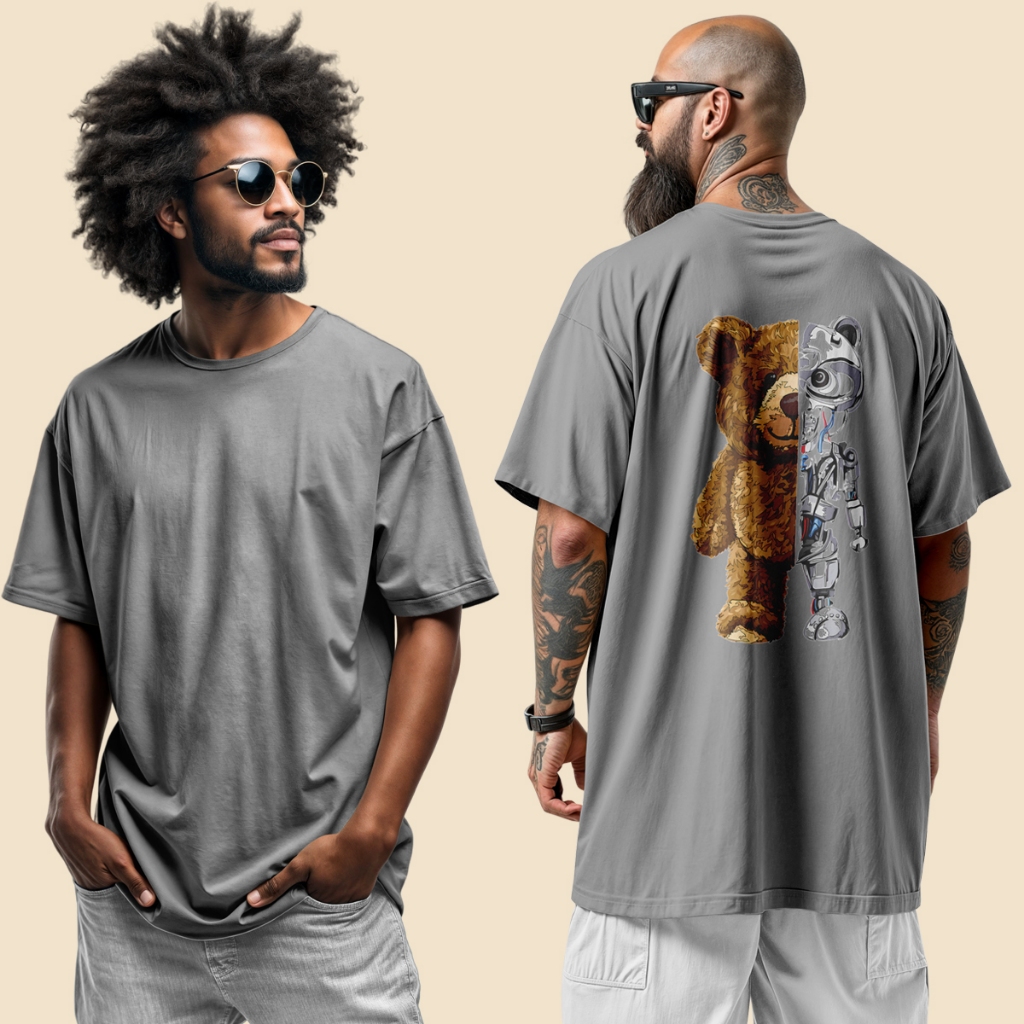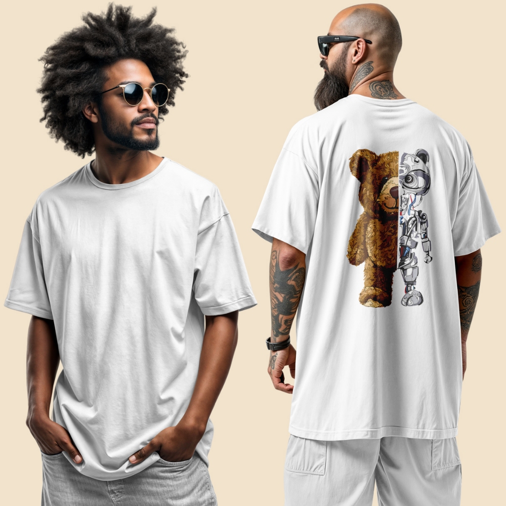 Camisa Masculina no Estilo Urbano Streetwear Urso & Robo