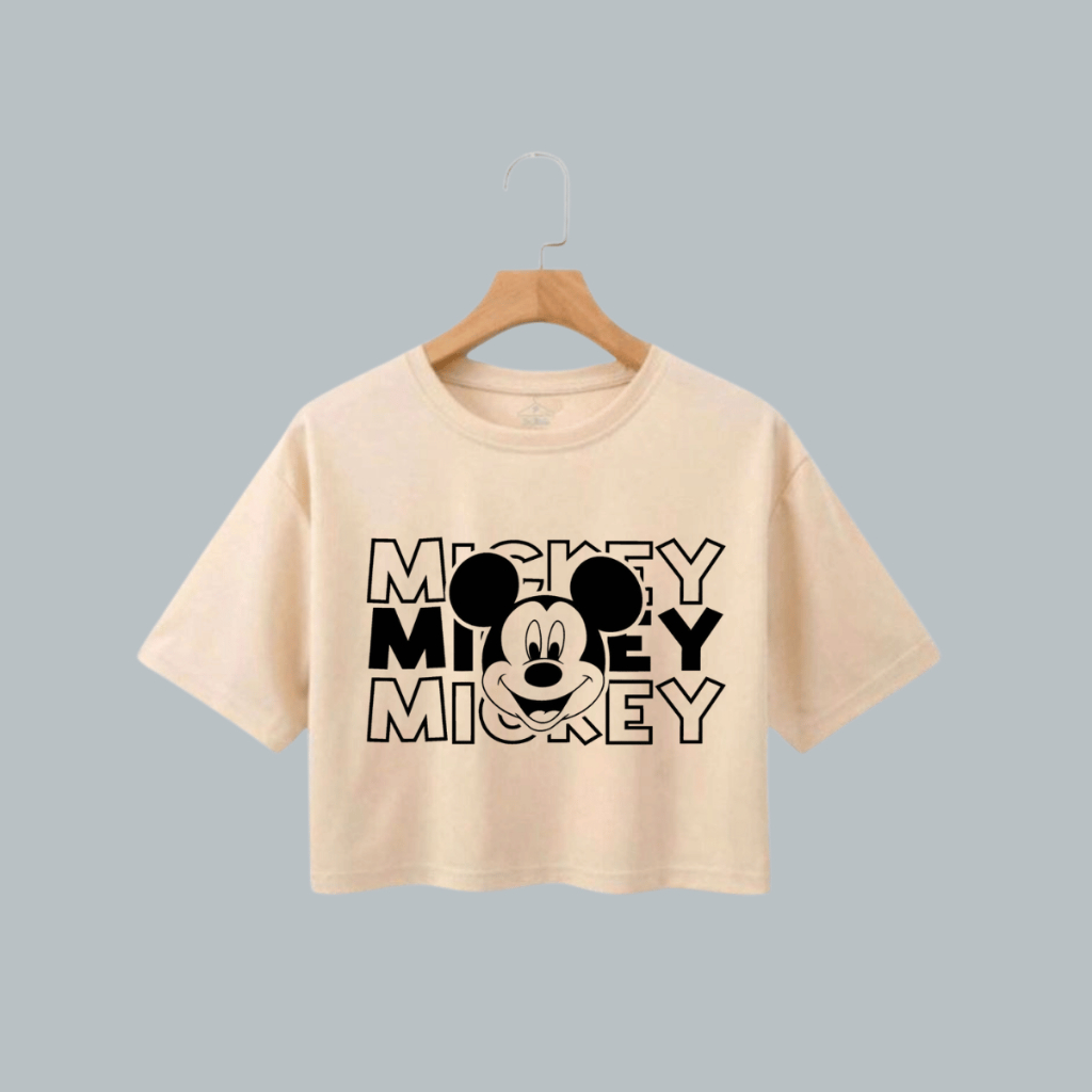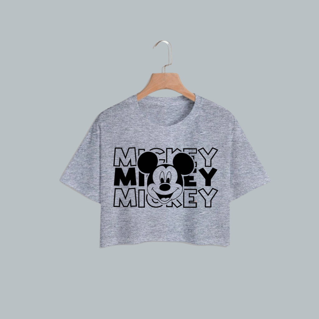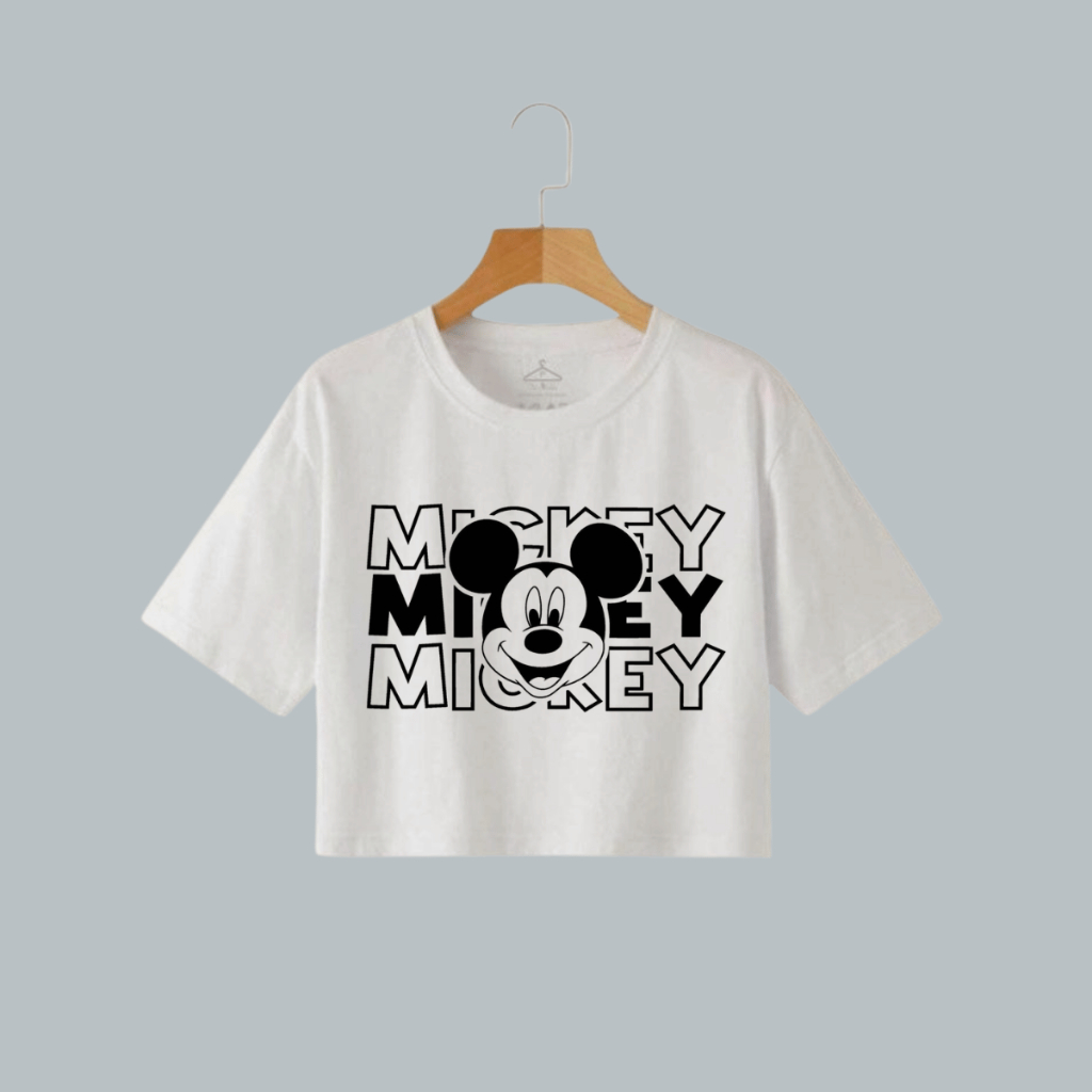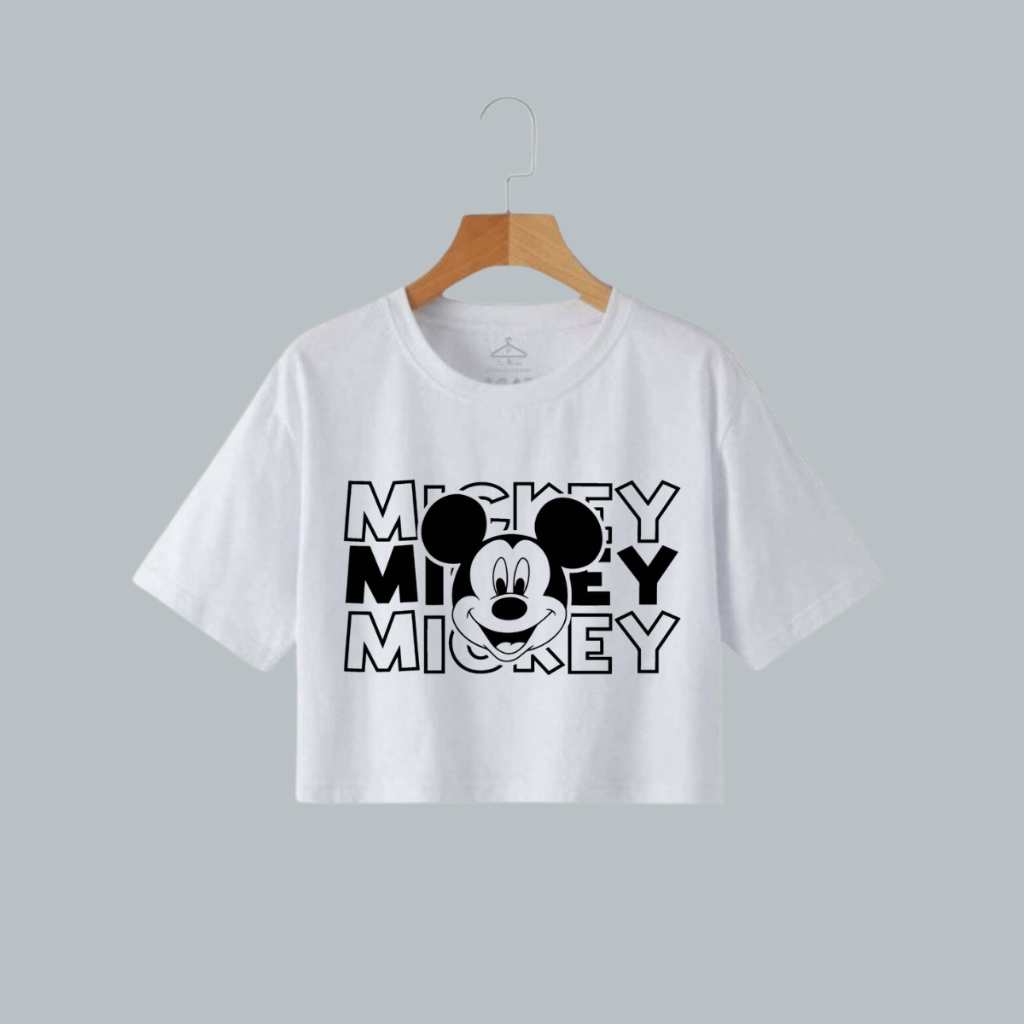 Camiseta T-shirt Cropped Feminina Mickey Algodão Premium Estampa Fofa