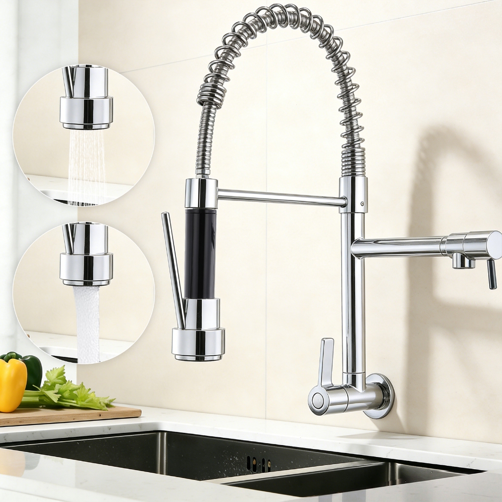 Torneira De Cozinha Gourmet Alça Única Com Extensor De Spray Tubo De Água Flexível Superior Prateado Para Ajuste