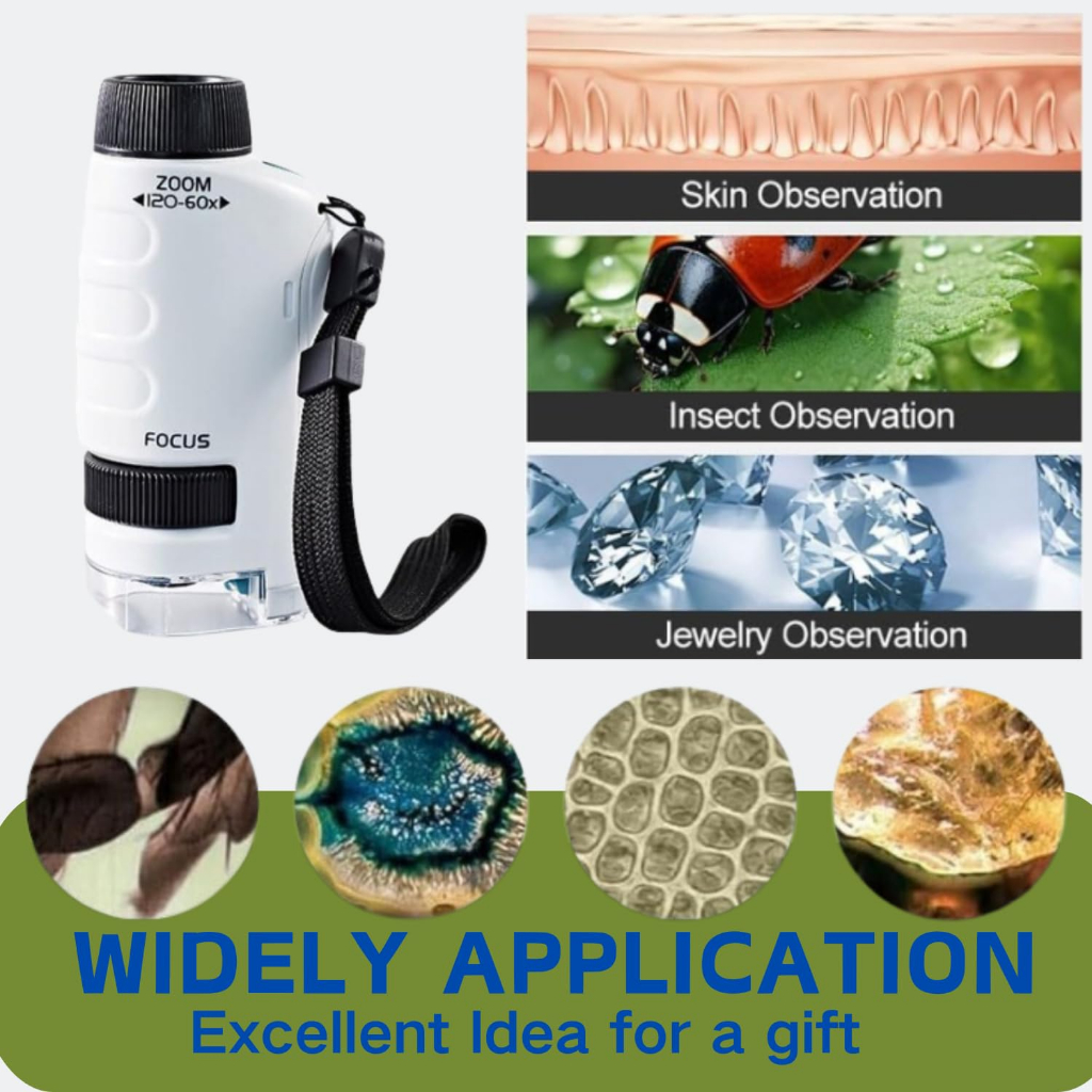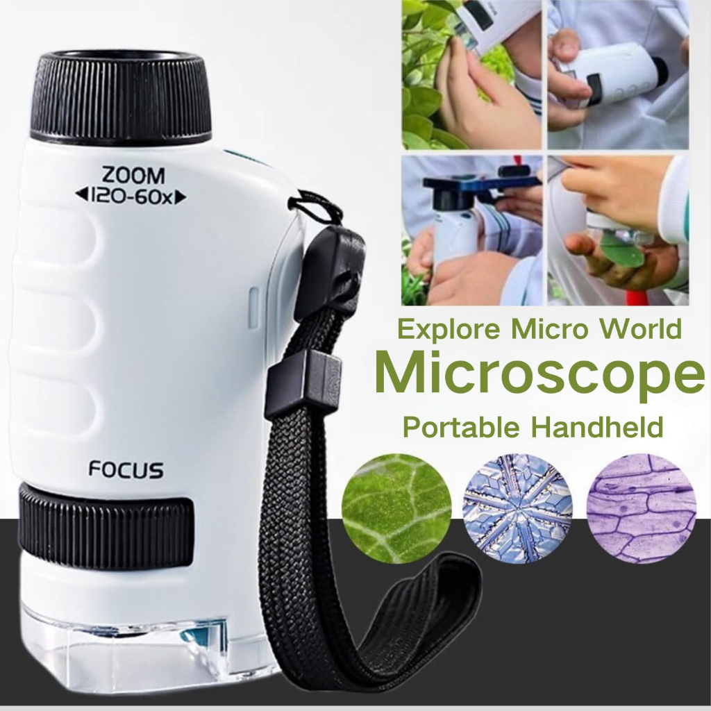 Microscópio De Mão Portátil Com Zoom 60X-180X Para Plantas Infantis