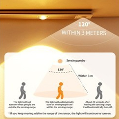 Luz de LED com Sensor para Armário 60/50cm Ultra Fina 3 Cores, Recarregável (Branco/Quente/Natural)-F9