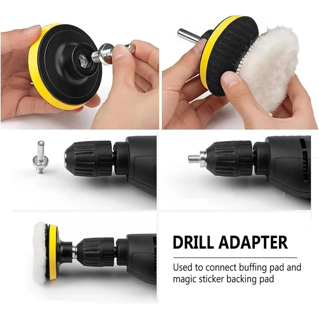 [5/7/8/11 Peças] Kit Polimento Adaptador+ Disco Furadeira Pastilhas Polimento