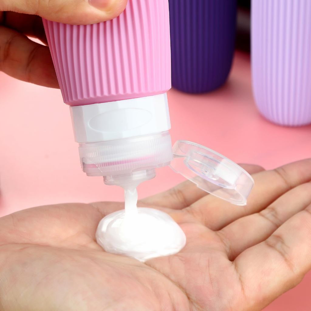 Kit Viagem Frasco Pote Porta Shampoo Creme Silicon 4un 90ml