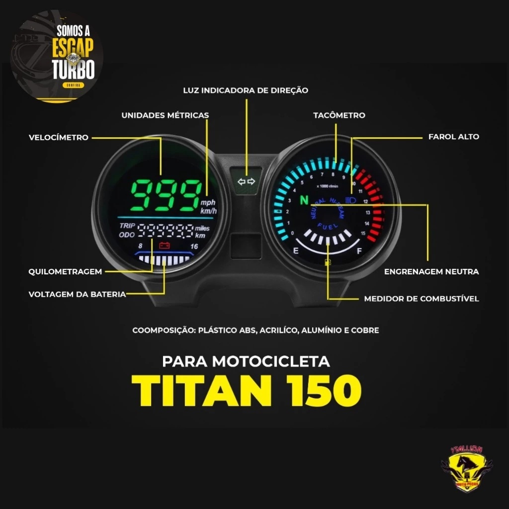 Painel Digital LED Velocímetro Titan 125 CG125 Fan 125 2005A - 2008/Titan 150 Fan150 2009-2013