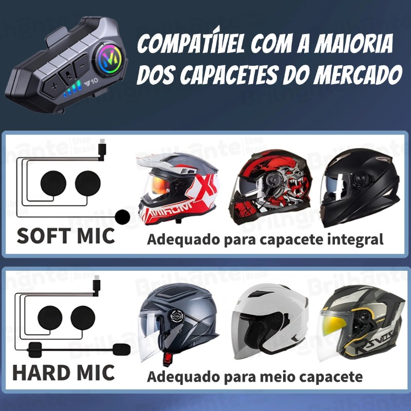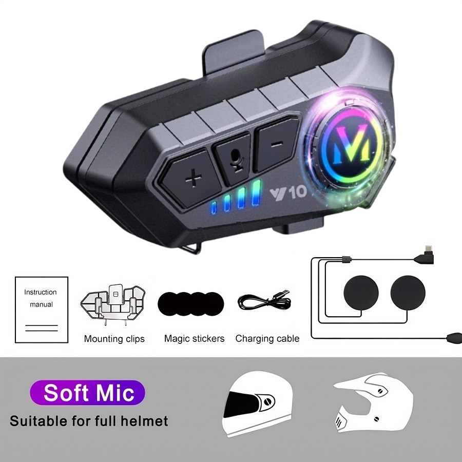Atualizar Y10 Motocicleta Sem Fio Bluetooth 5.3 Fone de Ouvido Capacete Intercom Kit de Chamadas Mãos Livres À Prova D'Á