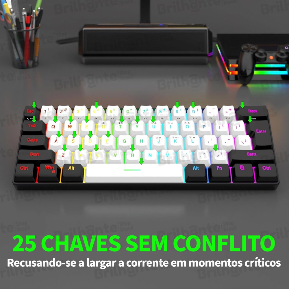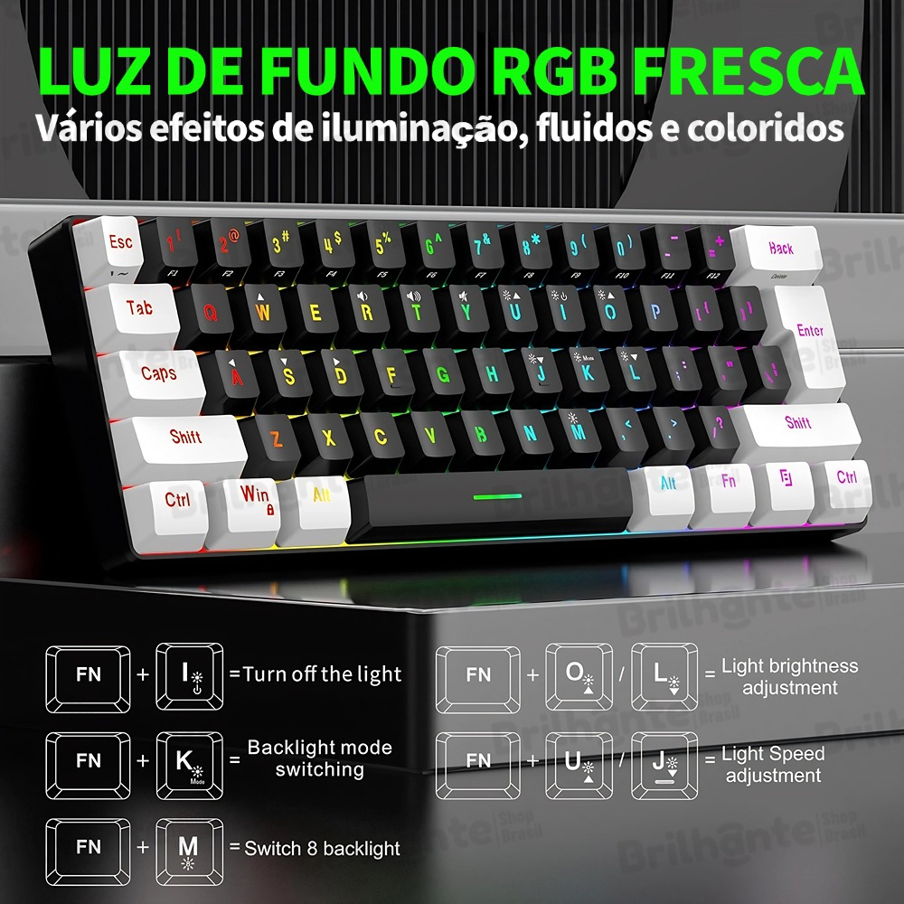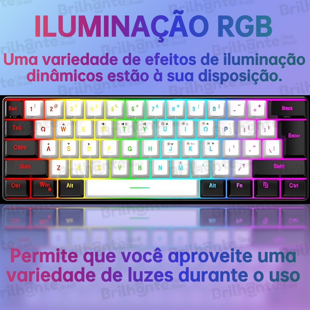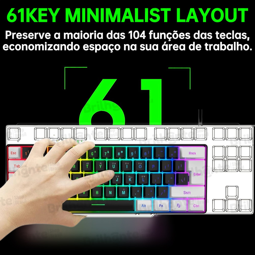 Teclado com fio 61 teclas RGB Backlight Mini cabo de alimentação plugável USB-C compacto-BI