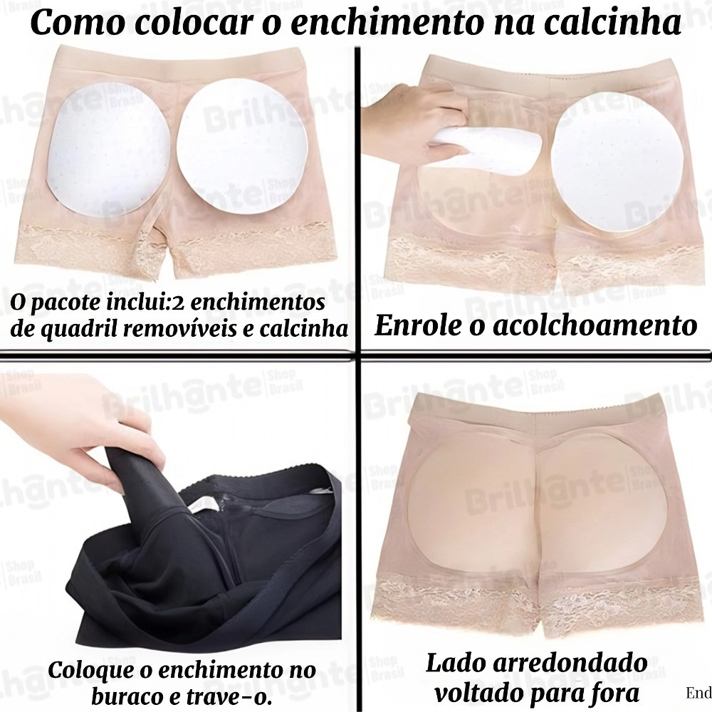 Calcinha Acolchoada Feminina Intensificador De Quadril Preto/Bege M-XL Modelador Sexy Com Acolchoamento Confortável Rou