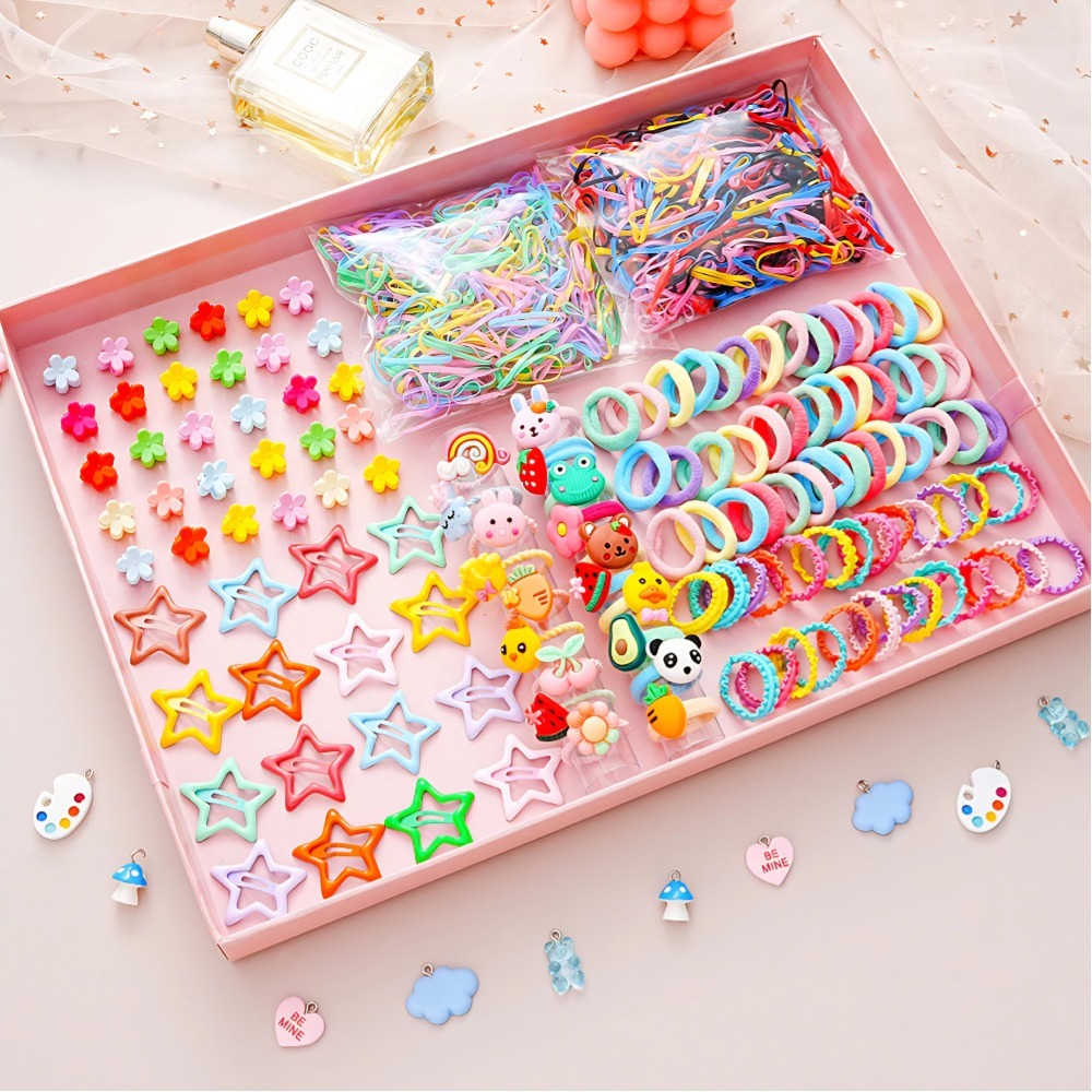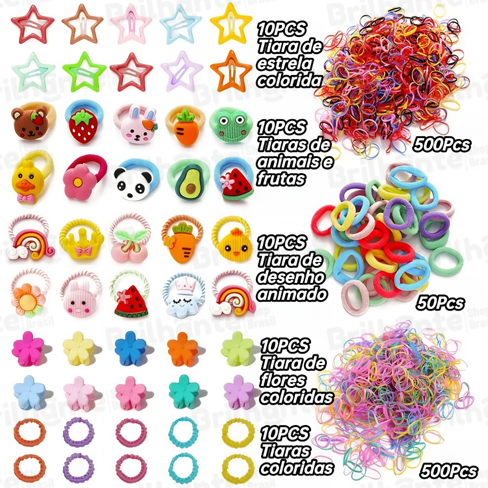Conjunto De Acessórios Para Cabelo De Desenho Animado De 1100 Peças | Clipes BB Coreanos +Conjunto de pente de 3peças