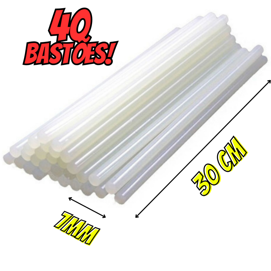 80/40/30/20 ou 10 Bastões de Cola Quente fina Transparente 7,0mm