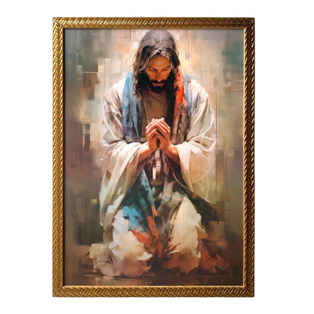 Quadro Abistrato Jesus Orando Resinado 50x70cm.