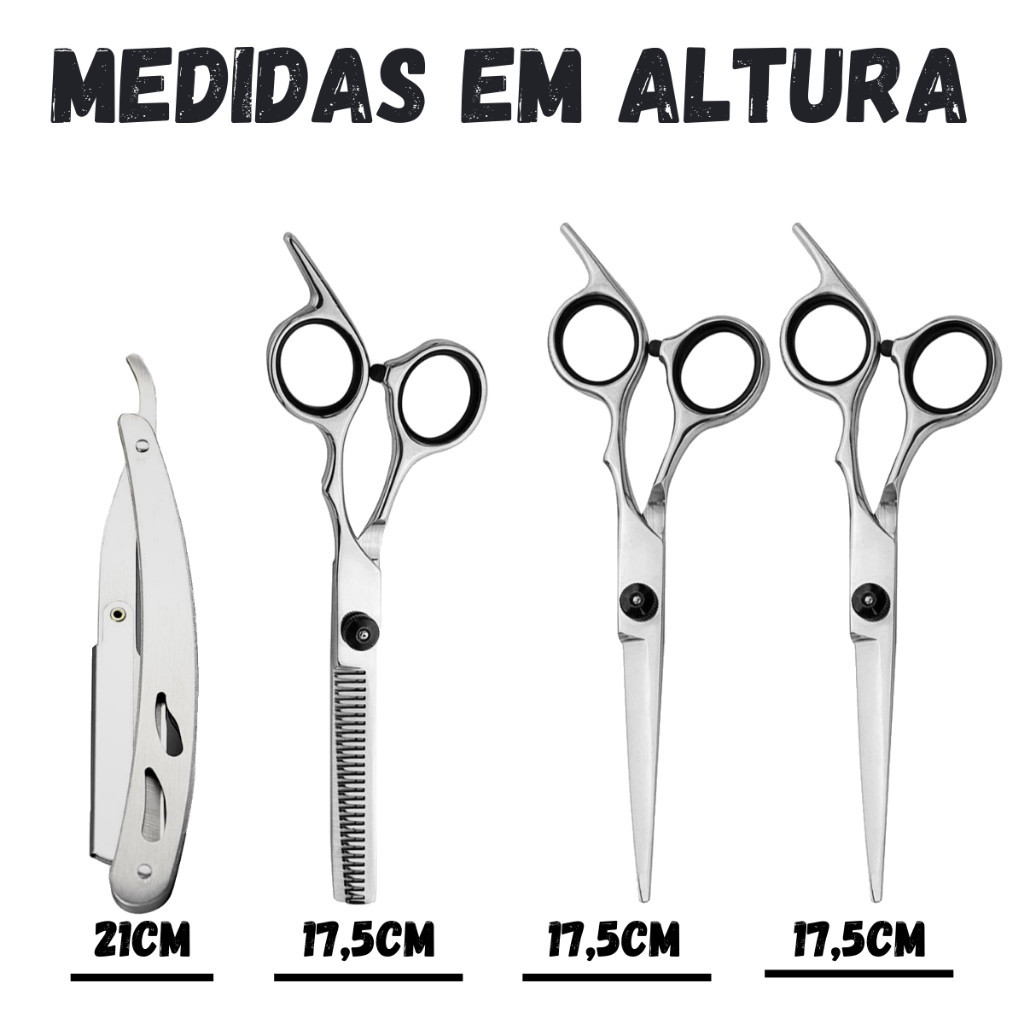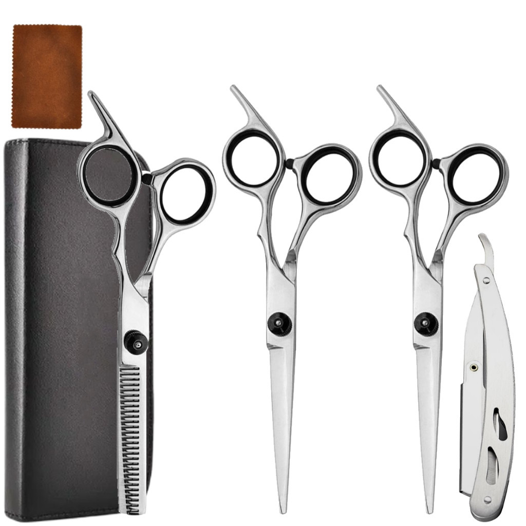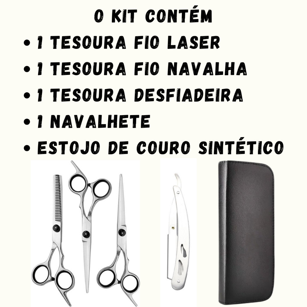 Kit Tesouras Profissionais Tesoura Fio Navalha e Fio Laser Desbaste Desfiadeira Tesoura Barbeiro Com Navalhete Estojo