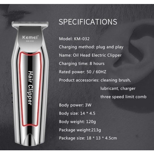máquina de acabamento cortar cabelo barba barbeador pezinho profissional recarregável kemei KM-032