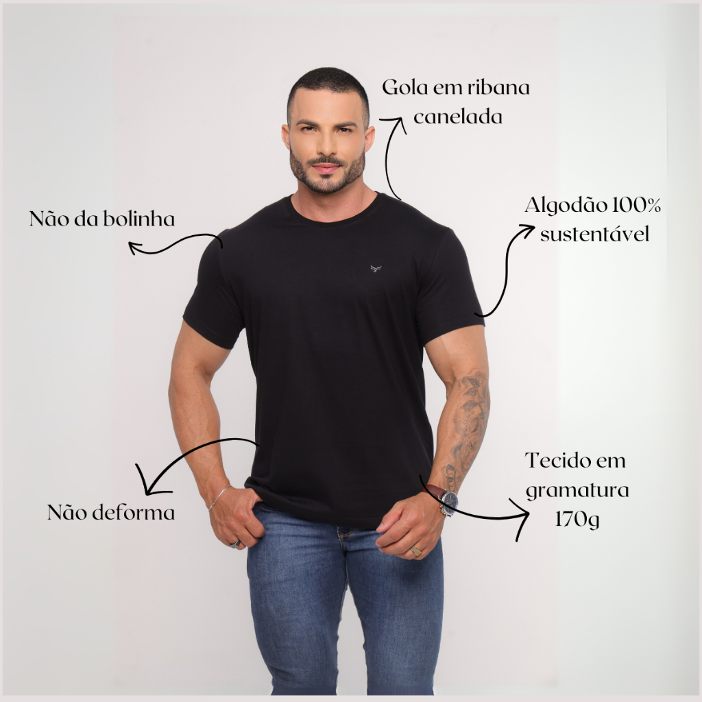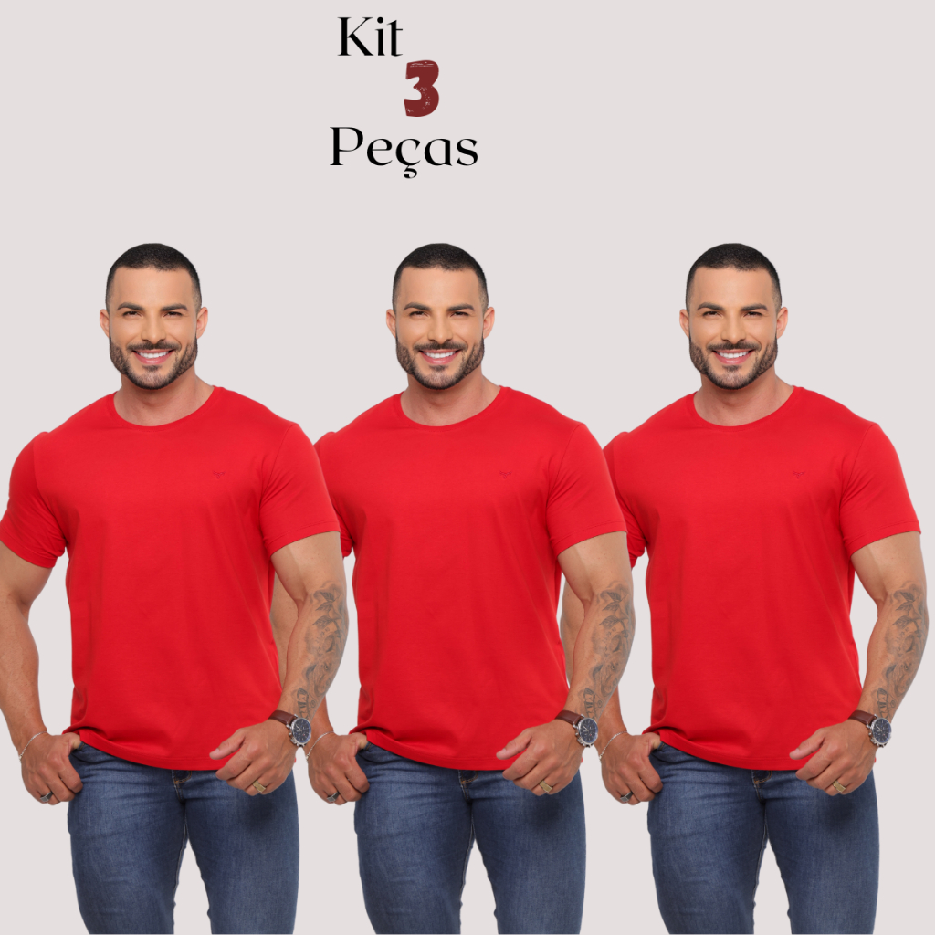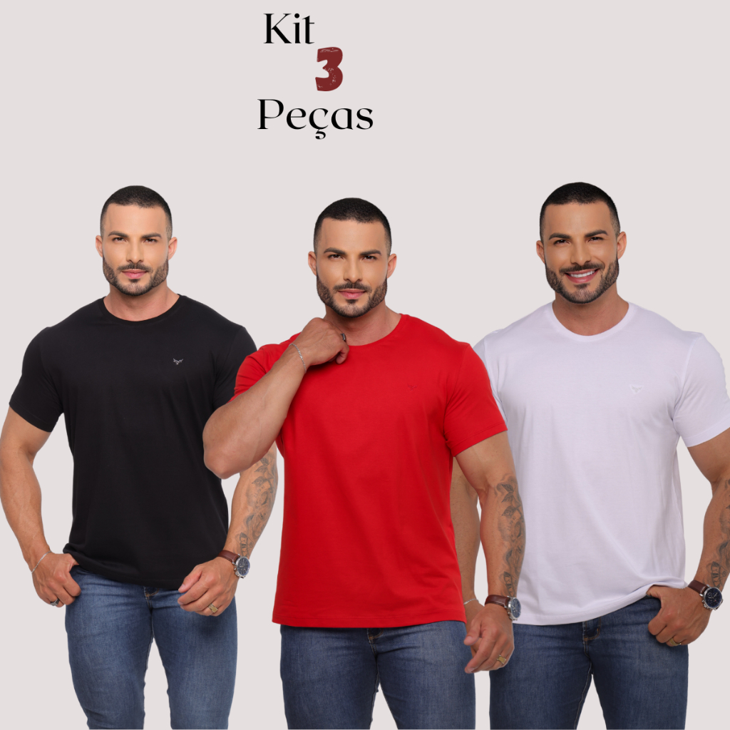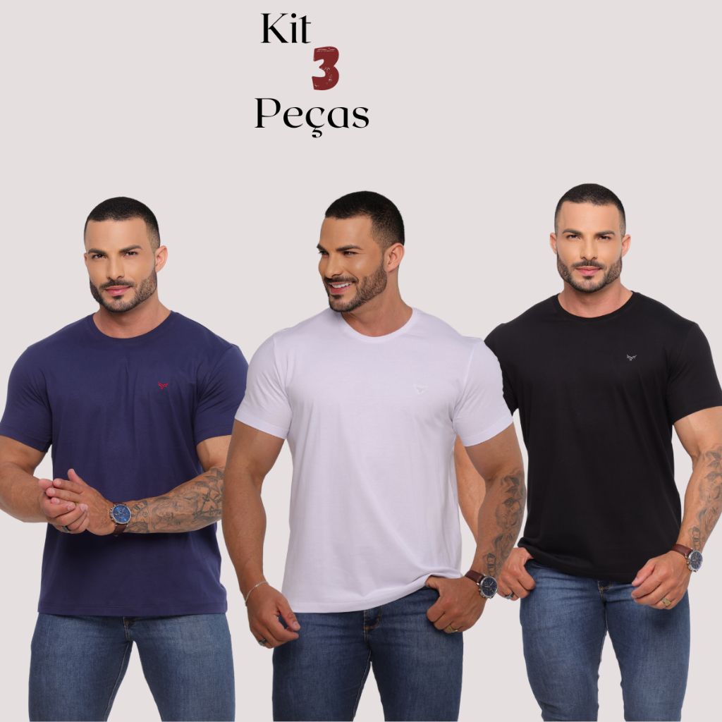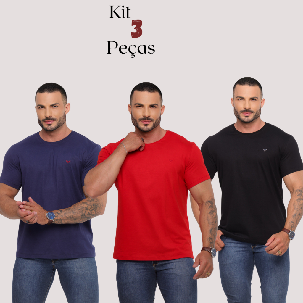 Kit 3 Camisetas Gola Rendonda Básica do P ao G2 Camiseta 100% Algodão Fio 30 Penteado